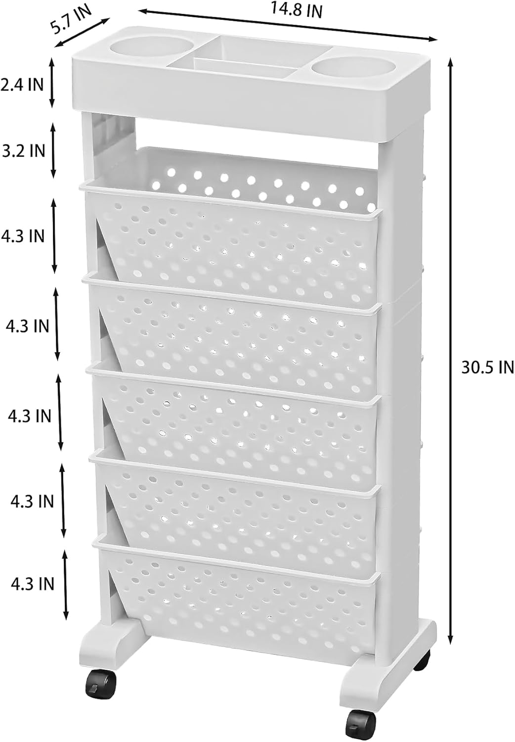 Ample Storage Capacity: Featuring 6 spacious tiers, this rolling bookshelf offers ample storage capacity for all your books, magazines, journals, and other reading materials. The open-back design of the shelves allows for easy access, making it convenient to retrieve and put away books without any hassle. Say goodbye to overcrowded bookshelves and welcome a more organized and visually pleasing space.
