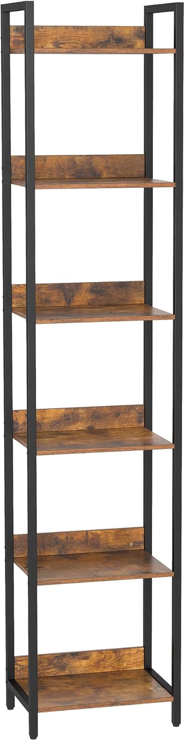 6-Tier Bookshelf, Narrow Bookcase with Open Shelves, Talll Book Shelf Coner Shelf for Living Room, Bedroom, Home Office, Study, Bathroom,11.5 x 15.7 x 72.6 Inches, Rustic Brown and Black