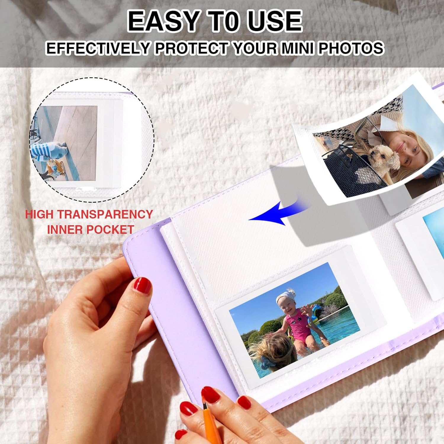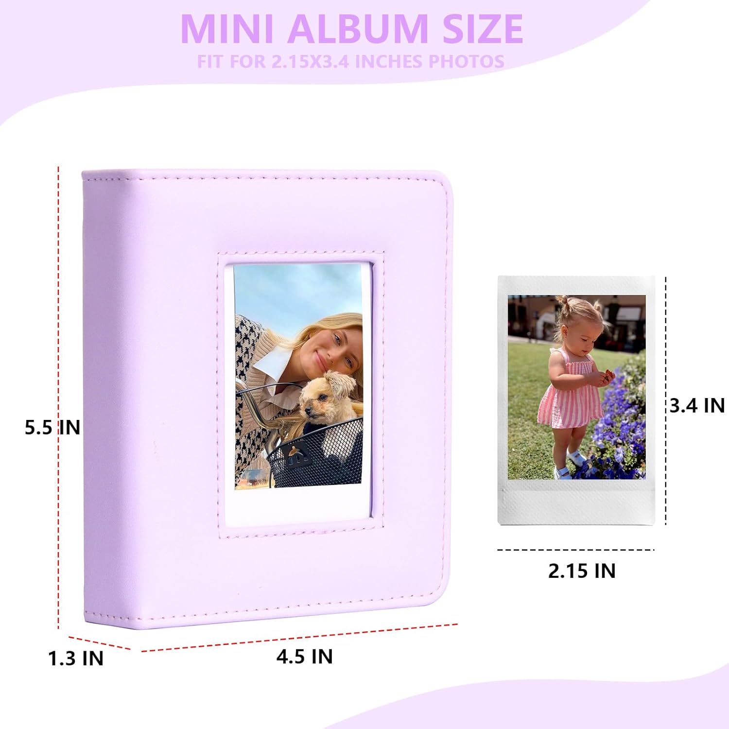 64 Pockets Mini Photo Album, Polaroid Album Book for Fujifilm Instax Mini 12/11/SE/99/90/EVO/Link/Liplay Instant Camera 2.15×3.4 Inches Films, PU Mini Photo Album with Cover Display – Purple