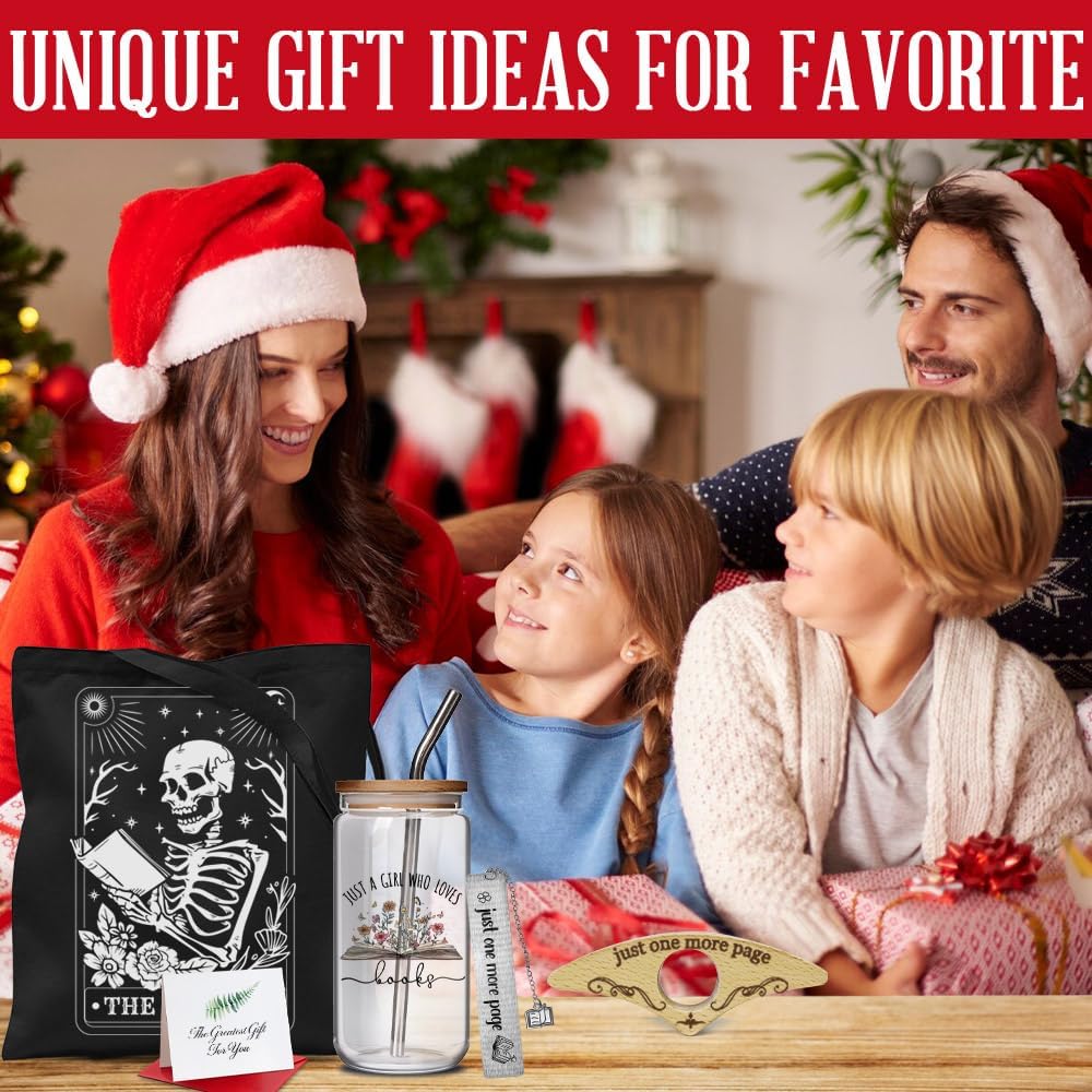 6Pcs Book Lovers Gifts Box Set for Readers Women Includes 16OzGlass Cup, Bookmark, Tote Bag, Book Page Holder, Book Ornament, Card Librarian Bookish Gifts for Book Lovers, Book Club Gift for Christmas