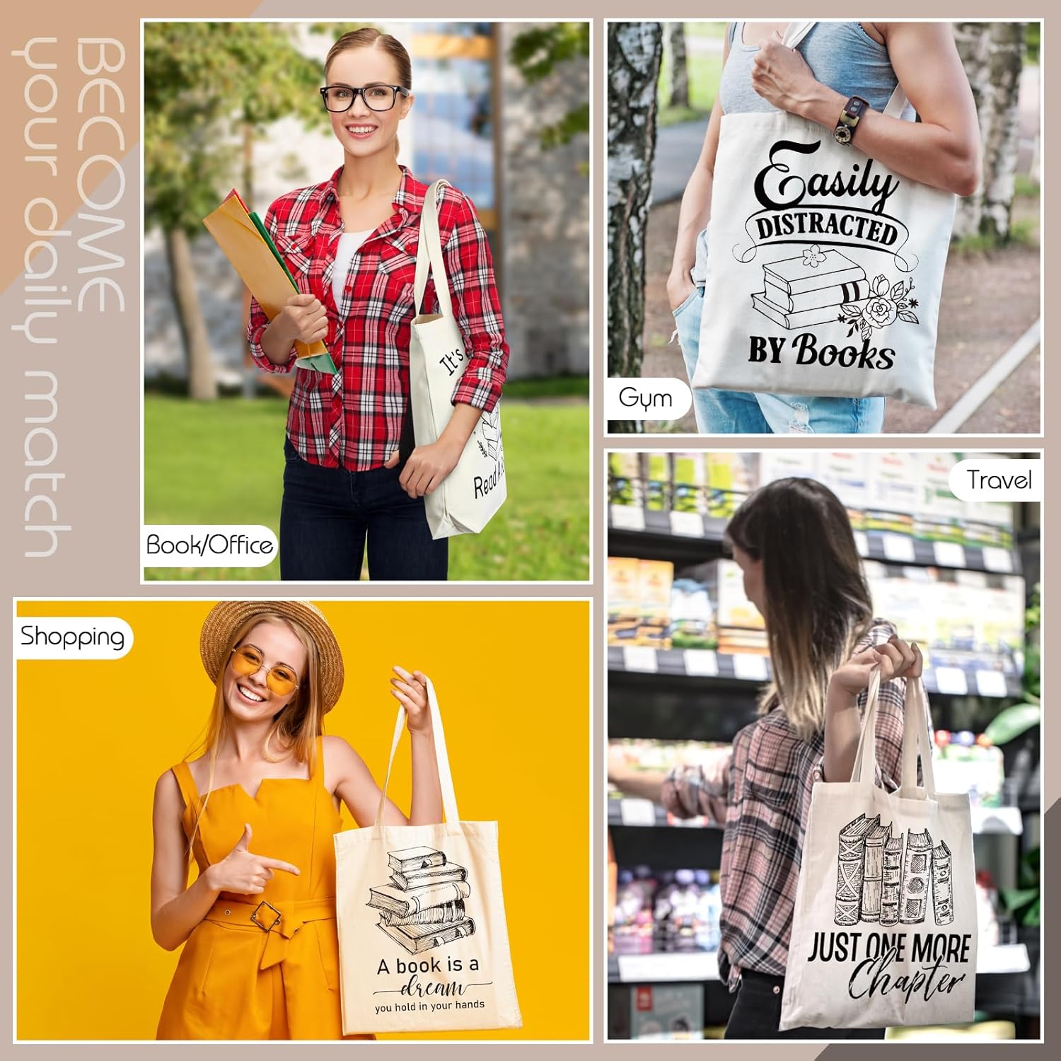 8 Pcs Canvas Book Tote Bag Bulk Aesthetic Book Lovers Club Gifts Library Bag Reusable Tote Bag for Women Men Teacher Readers Book Lovers Librarians Appreciation Gift