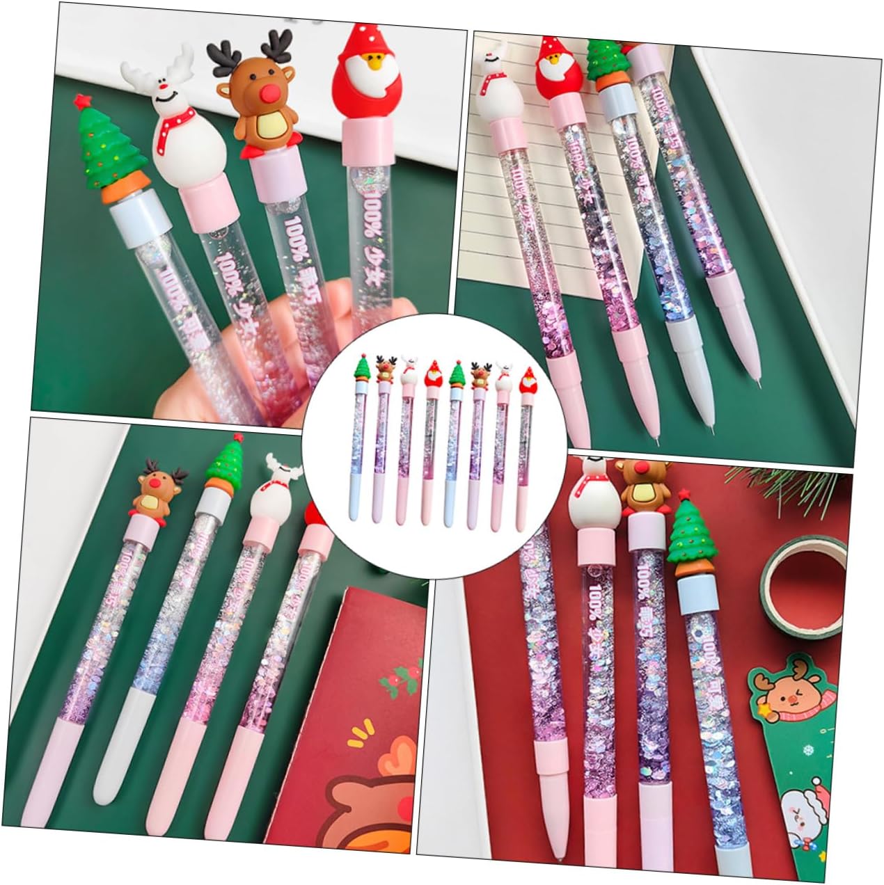 8pcs Christmas Quicksand Pen Gel Christmas Pen Santa Pen Christmas Party Christmas Roller Pen Novelty Holiday Pen Adorable Stationary Christmas Ink Pens Xmas Pens Water