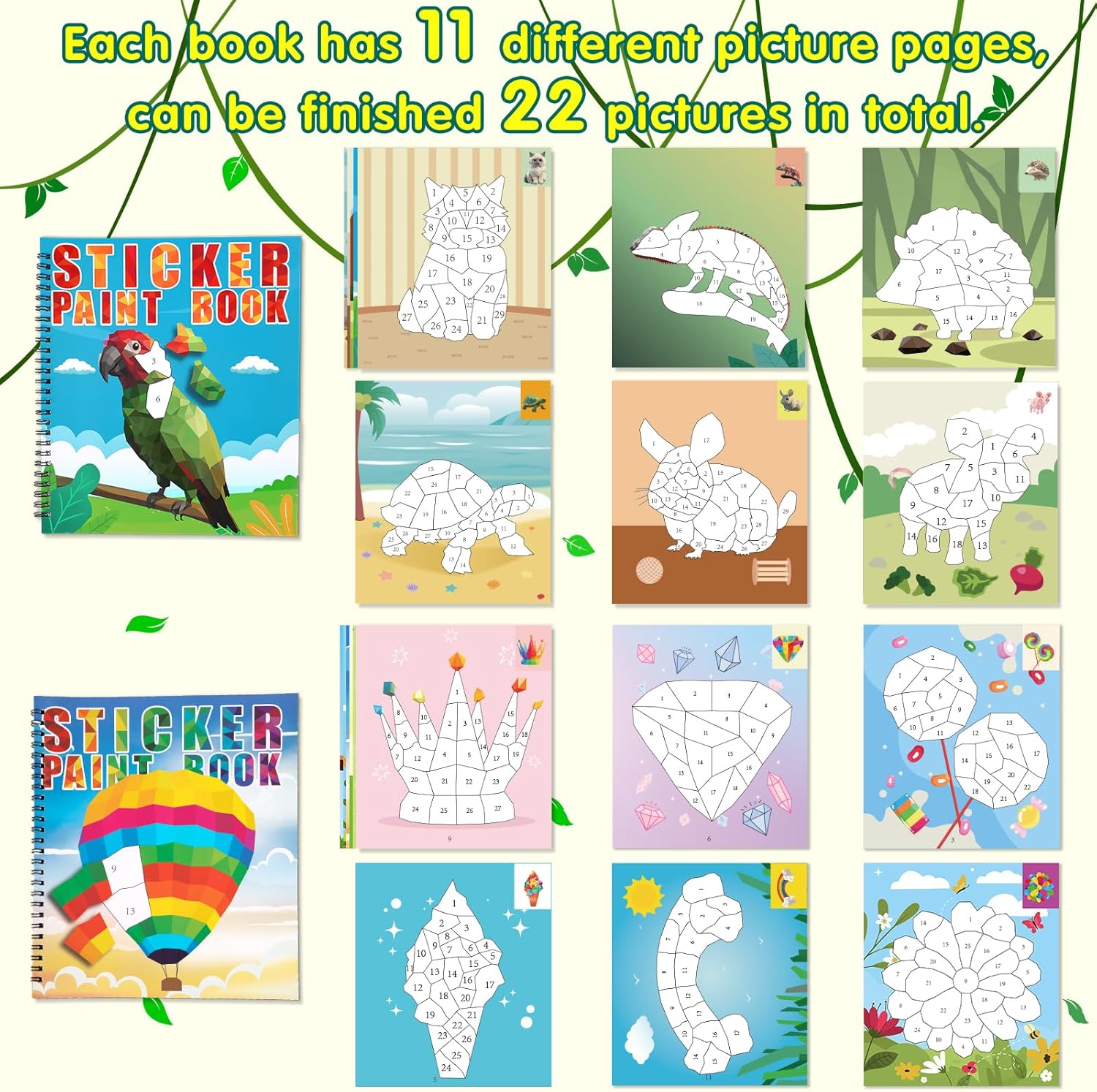 Books are perforated page designs – Package includes 2 sticker books and 22 sheets of stickers.Each book has 11 different picture pages,can be finished 22 pictures in total.All the pages are perforated.It’s easy to tear off your finished work to share with your friends or frame it up.