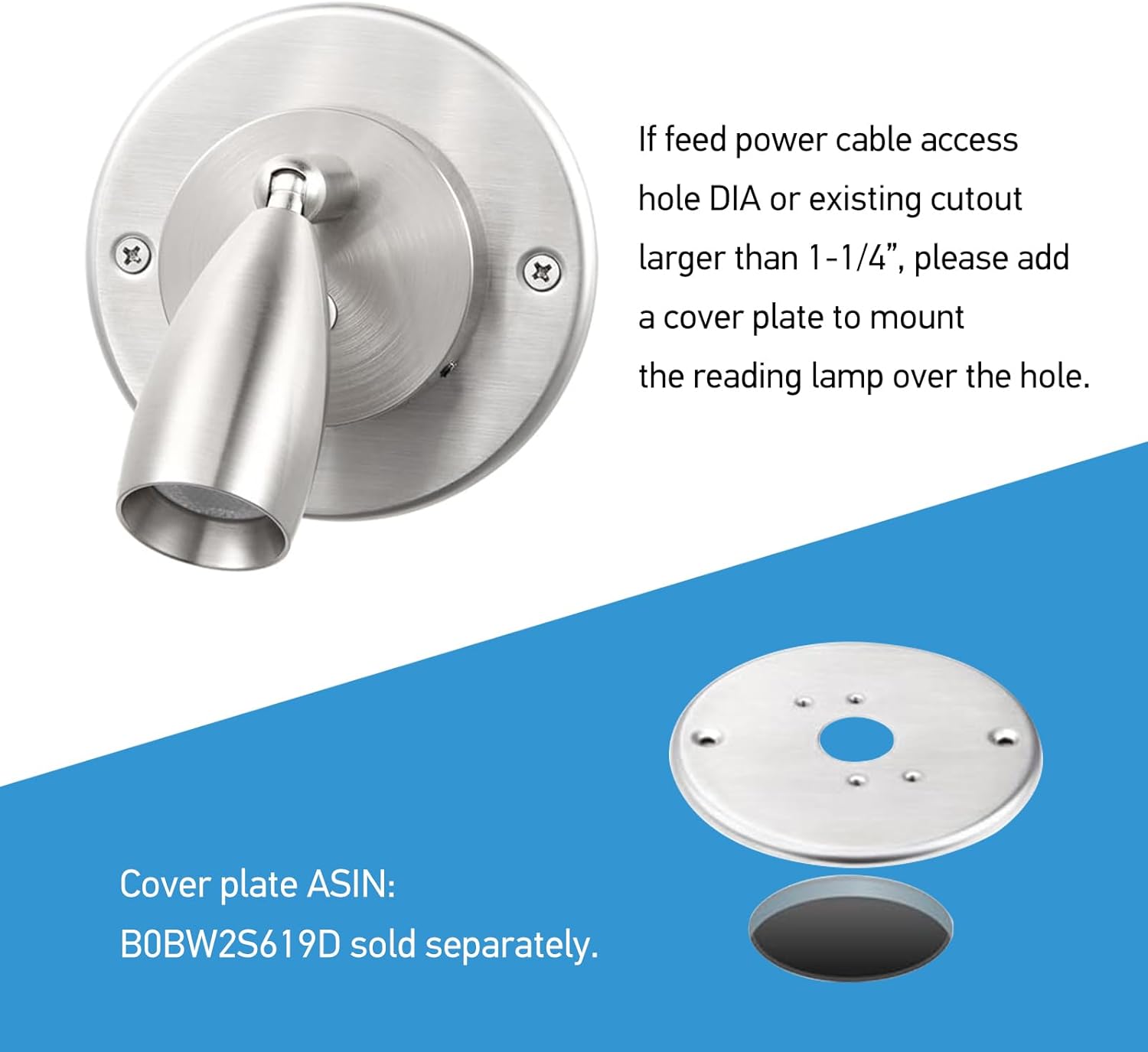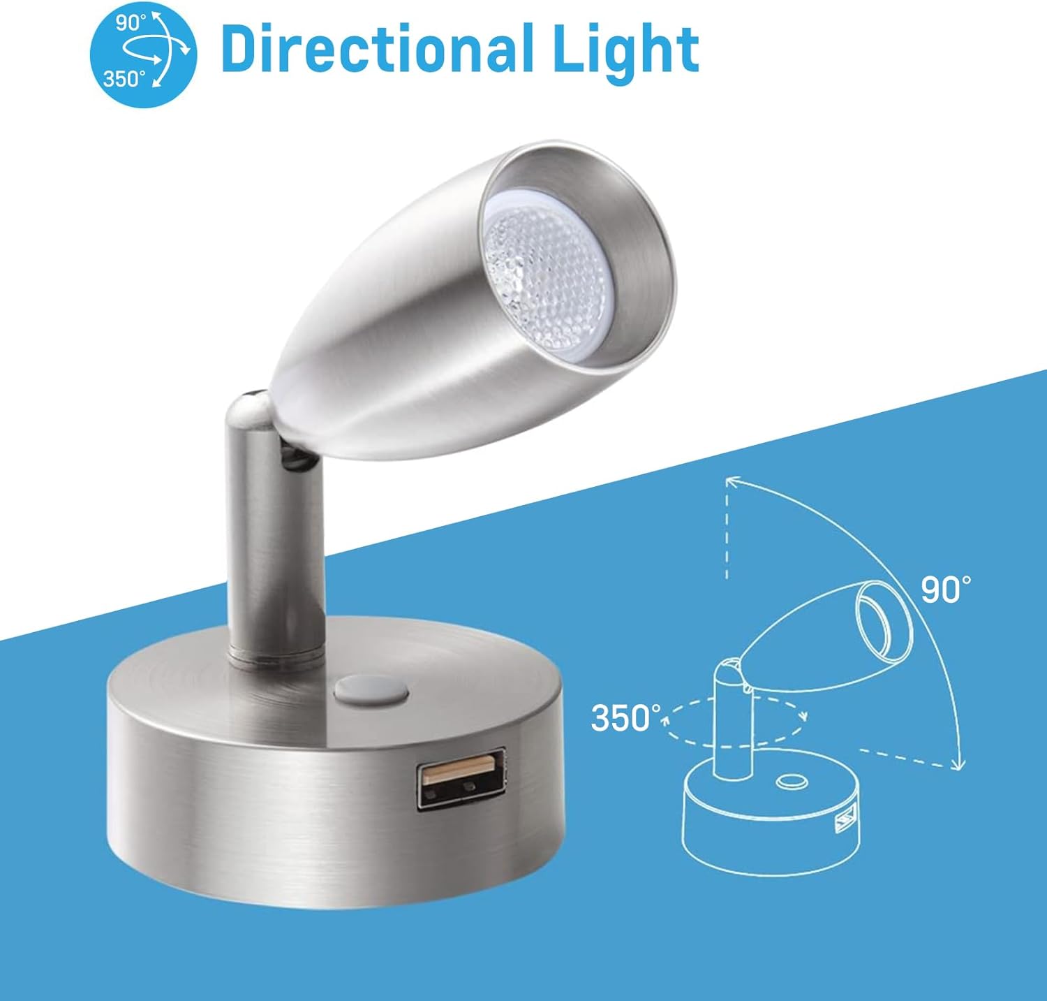acegoo 12V LED Reading Light RV Dimmable Reading Lamp with USB Charger 12 Volt Swivel Spotlight for Camper Van Truck Trailer Bed Reading, 12-24V DC Hard-Wired (Sliver)