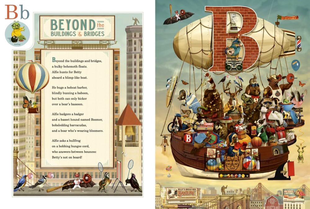 Part Where’s Waldo, part I-Spy, this is an ABCs book unlike any other. Each letter of the alphabet is its own unique destination, with a richly illustrated scene full of creatures, objects, and actions that begin with the corresponding letter, a rhymed poem, and a guide to help young readers decode each scene!