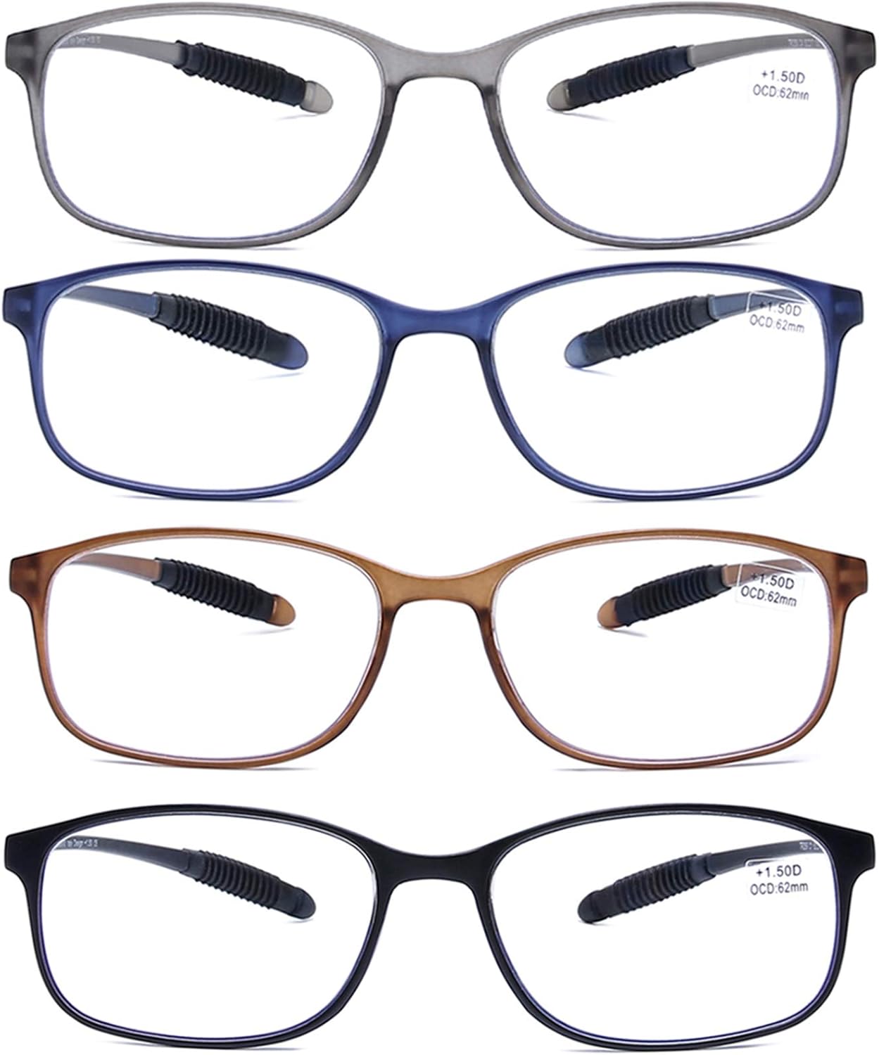 AQWANO 4 Pack Mens Reading Glasses, Lightweight Readers Flexible TR90 for Women Computer Blue Light Blocking Anti Glare Filter, 2.0