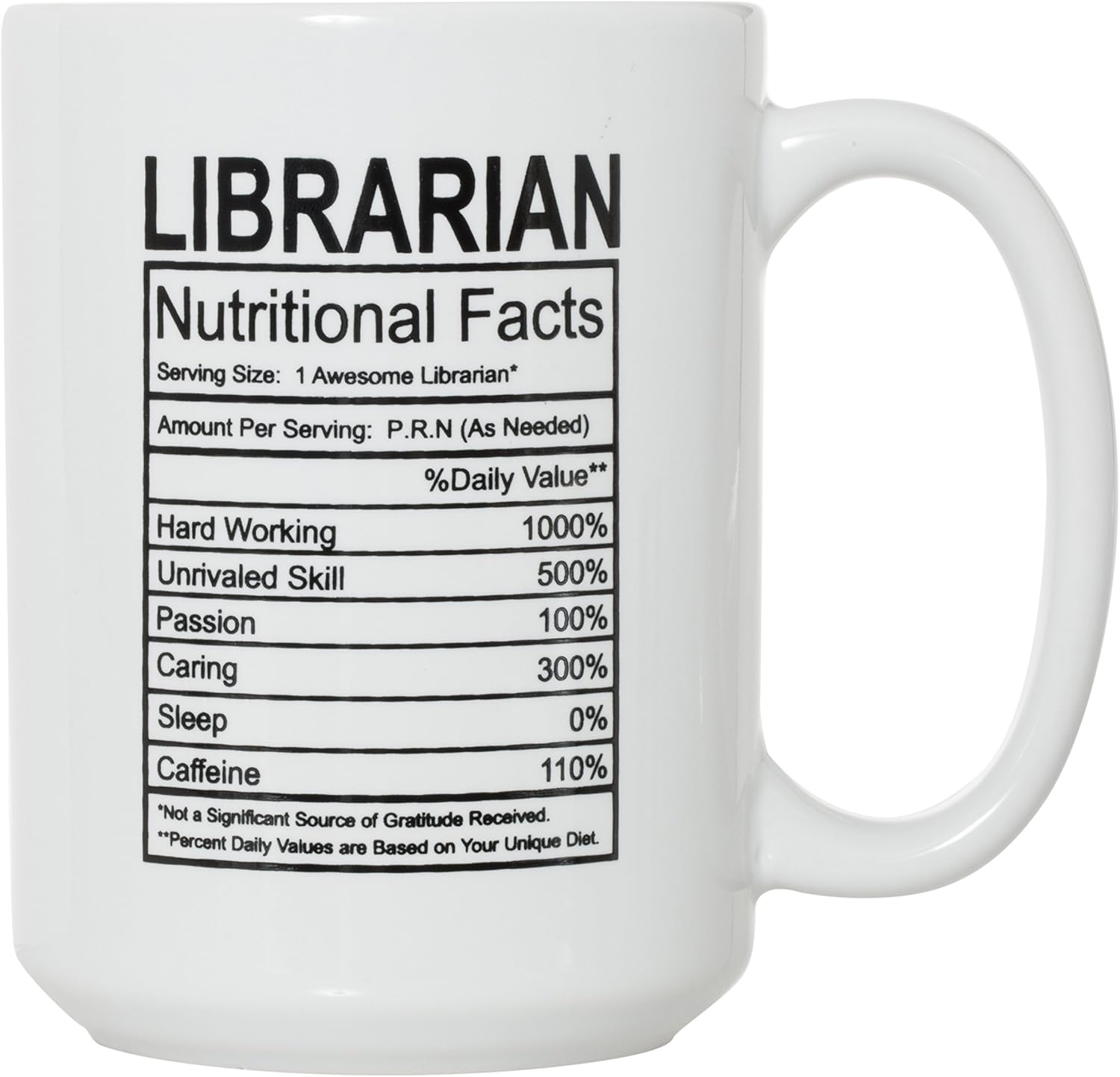 Artisan Owl Librarian Nutritional Facts Ingredients Label Mug – 15 oz Deluxe Double-Sided Coffee Tea Mug (Librarian White)