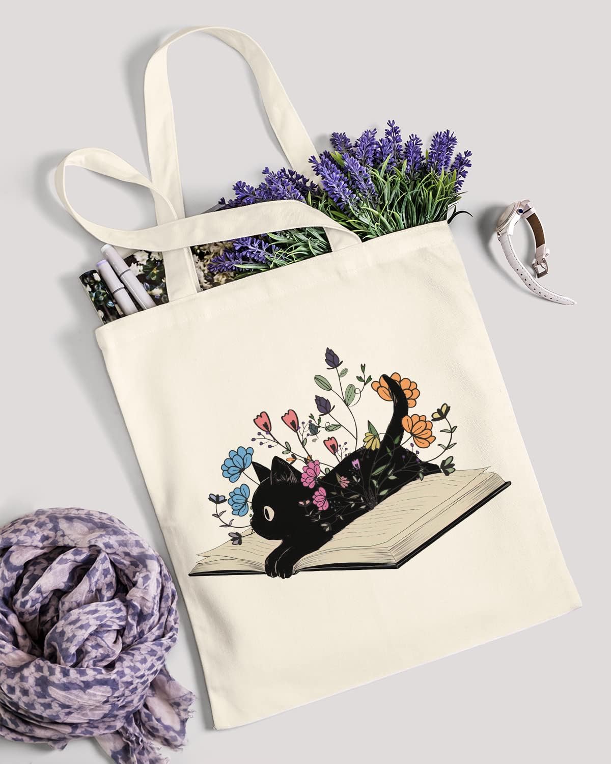 AUSVKAI Canvas Tote Bag Aesthetic for Women, Cute Reusable Cloth Cotton Bags for Shopping Beach Grocery