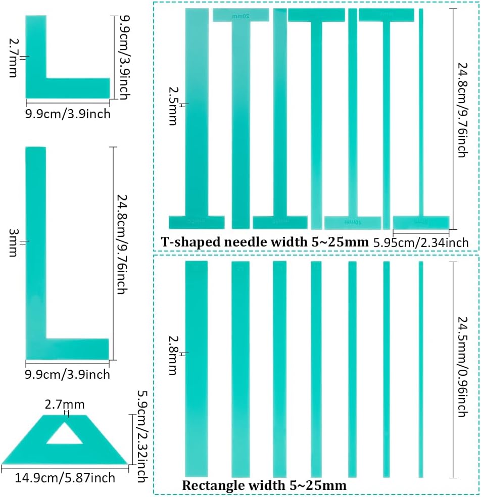 BENECREAT 17pcs Acrylic Bookbinding Spacer Tools, Clear Handmade Tools, L T Shape Ladder Straight Edge for Bookbinding Supplies, Double Cover Structure, Album Cover, Turquoise