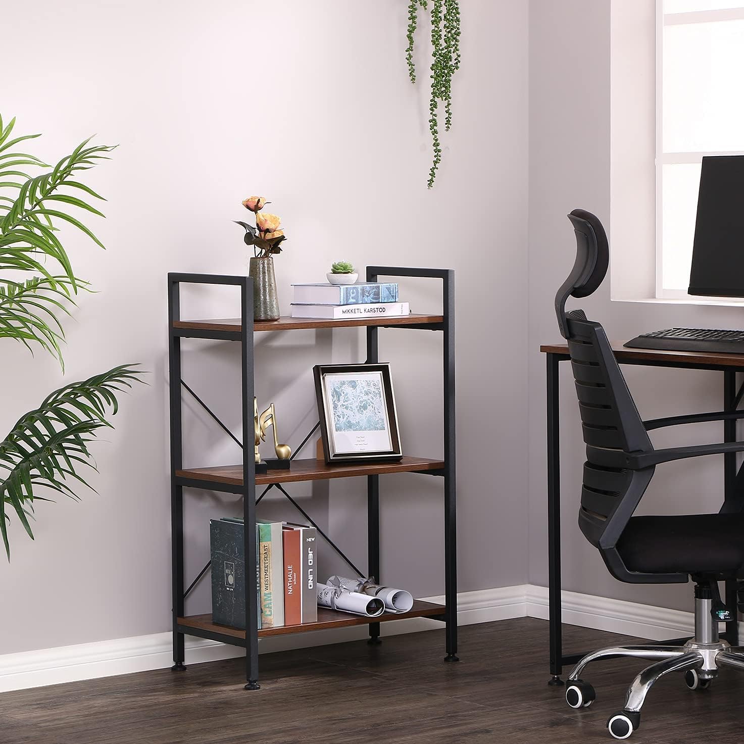 Versatile Storage Solution: The multi-level shelf design is a game-changer for organizing. Great for books, cherished photos, decor, and houseplants, it keeps your living space neat and clutter-free. The compact 3-shelf bookcase is a space-saver that fits perfectly into any corner of your home, from the living room to the bedroom, kitchen to the balcony, or even the office.