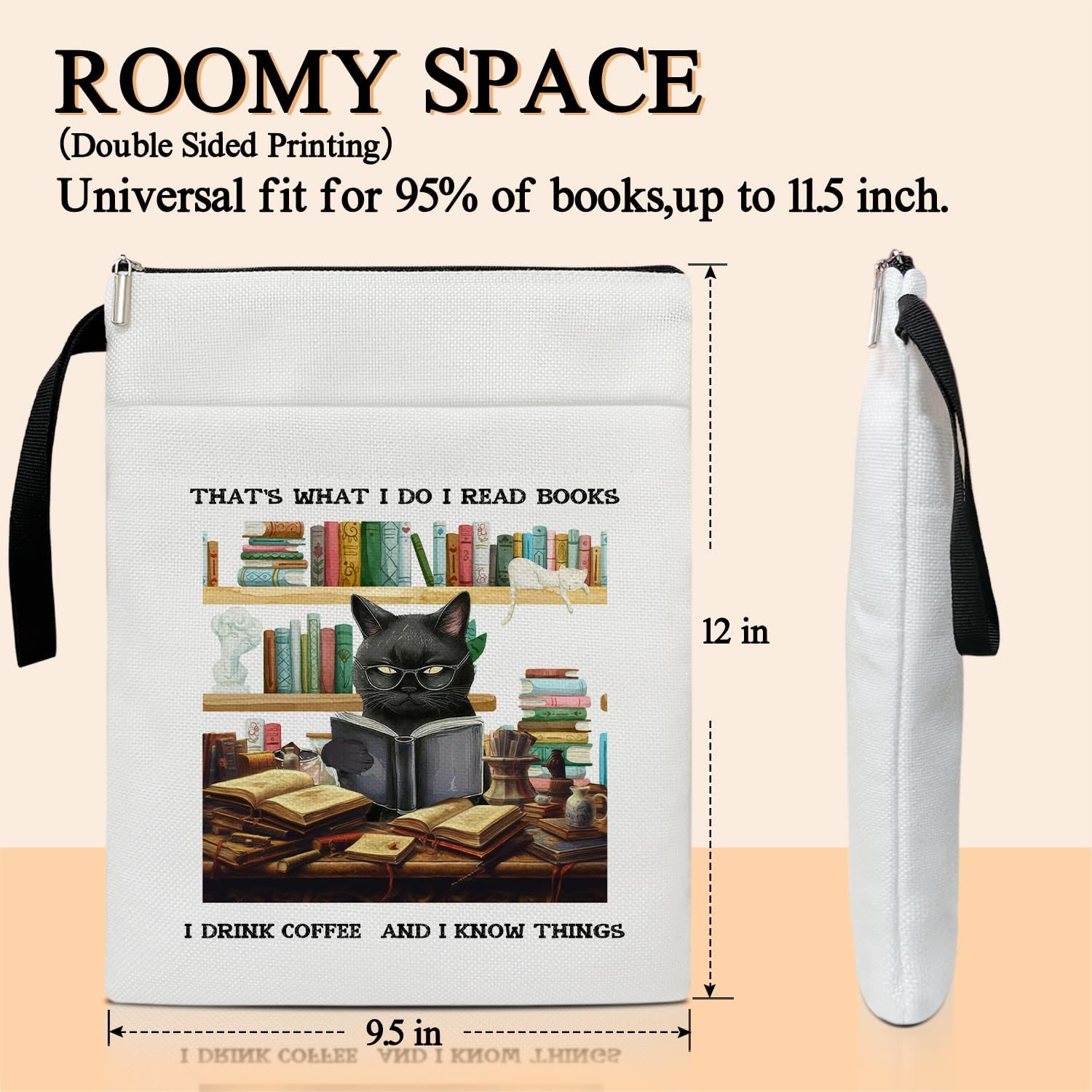 Black Cat Inspirational Book Cover, Cat Book Sleeve with Zipper, Book Pouch Book Cover Kindle Protector Sleeve, Book Sleeve for Book Lovers Cat Gifts for Women Teen Librarian Bookworm Bookish -06