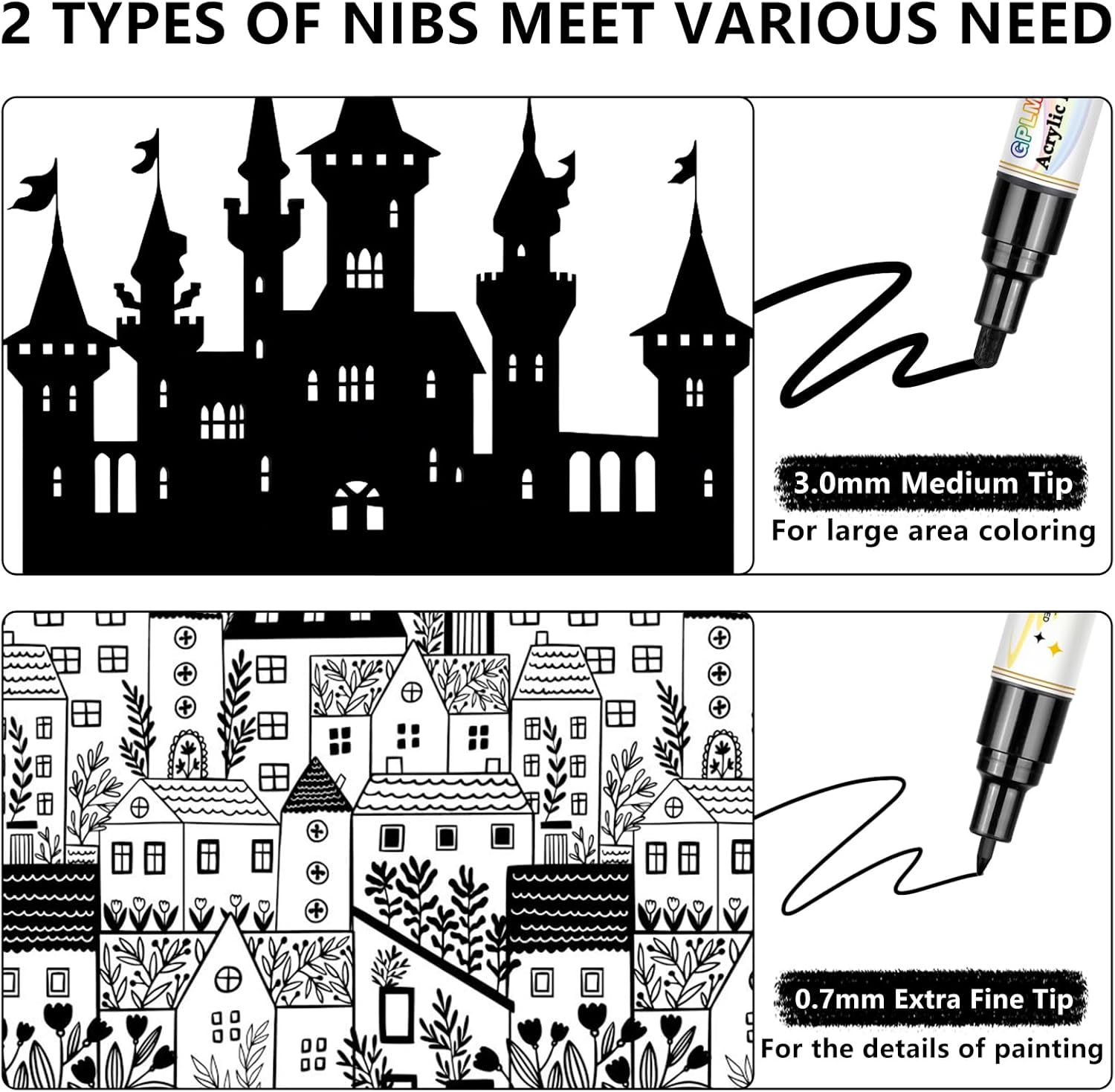 Dual-Tip Design for Versatility: Each black paint pen features a 0.7mm fine tip for detailed lines and a 3mm medium tip for filling larger areas, making it perfect for outlining, lettering, and adding intricate details to your DIY projects