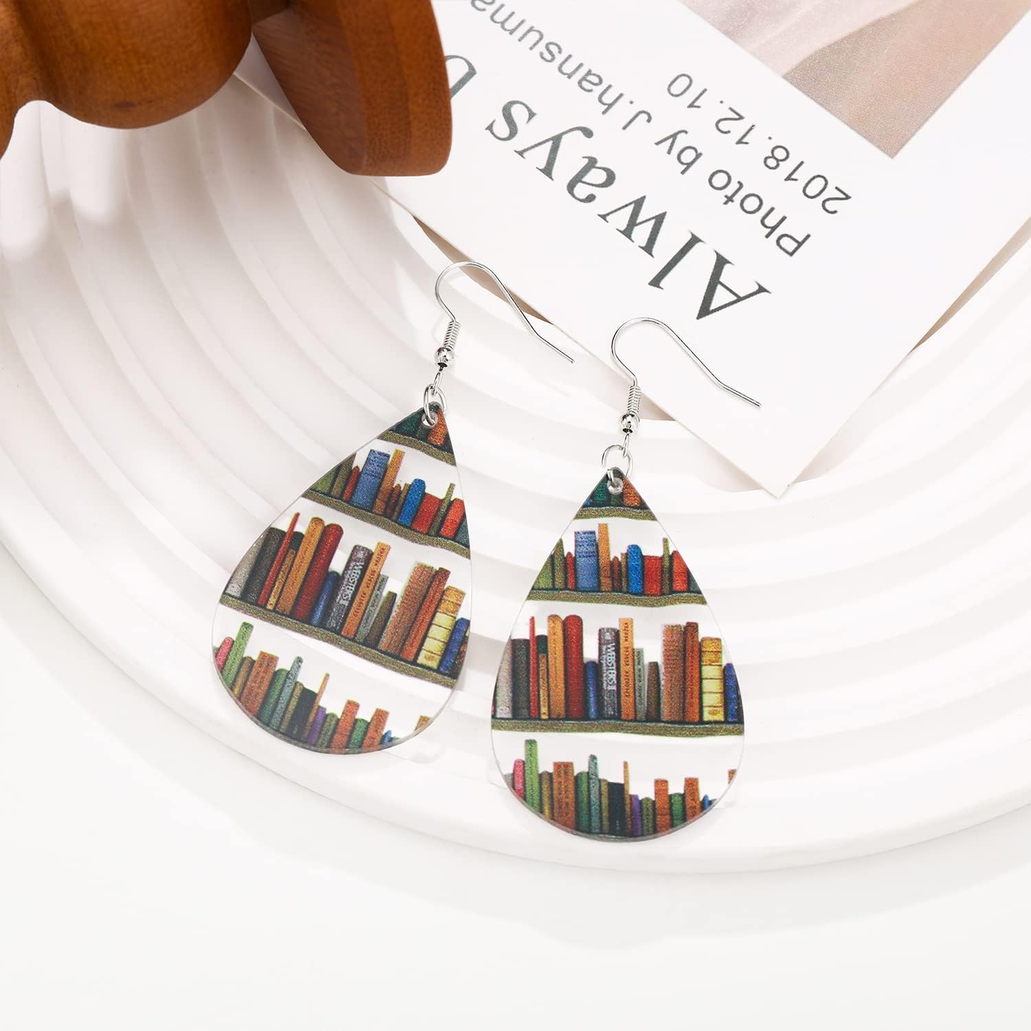 Book Earrings for Women Acrylic Bookcase Dangle Earrings with Book For Book Lovers Gift Graduation Teacher’s Day Appreciation Back To School Gifts For Teacher