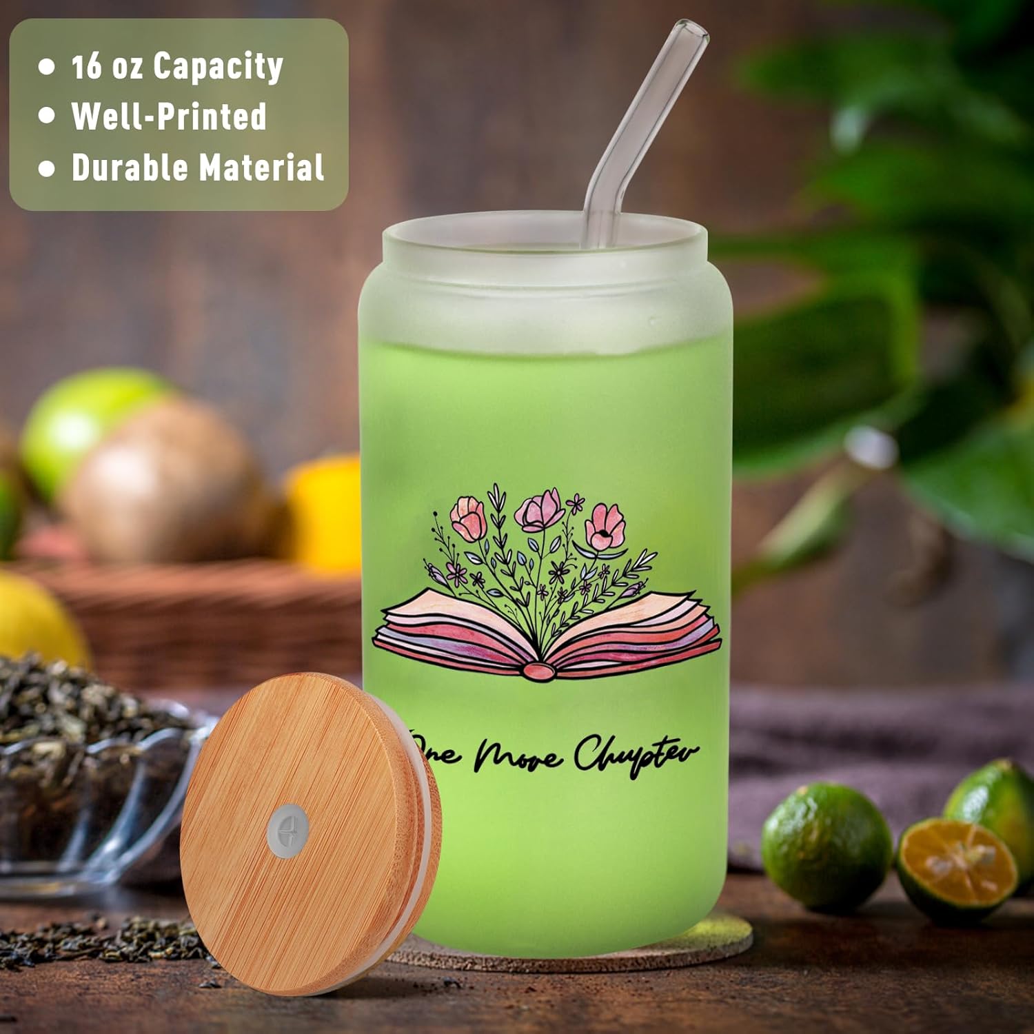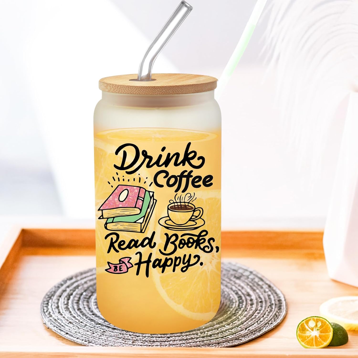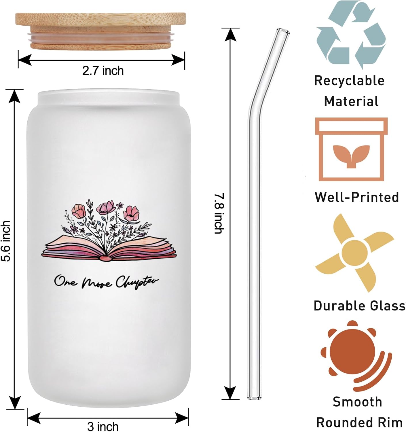 PRESENTS FOR BOOK LOVERS – The set includes a frosted glass mug, a bamboo cover, a glass straw, and a brush—the perfect coffee cup gift for the book lover. Ideal gift for ladies or girls who enjoy reading. Graduation, Retirement, Birthday, Anniversary, Valentine’s Day, Mother’s Day, Christmas, Thanksgiving, and other occasions.