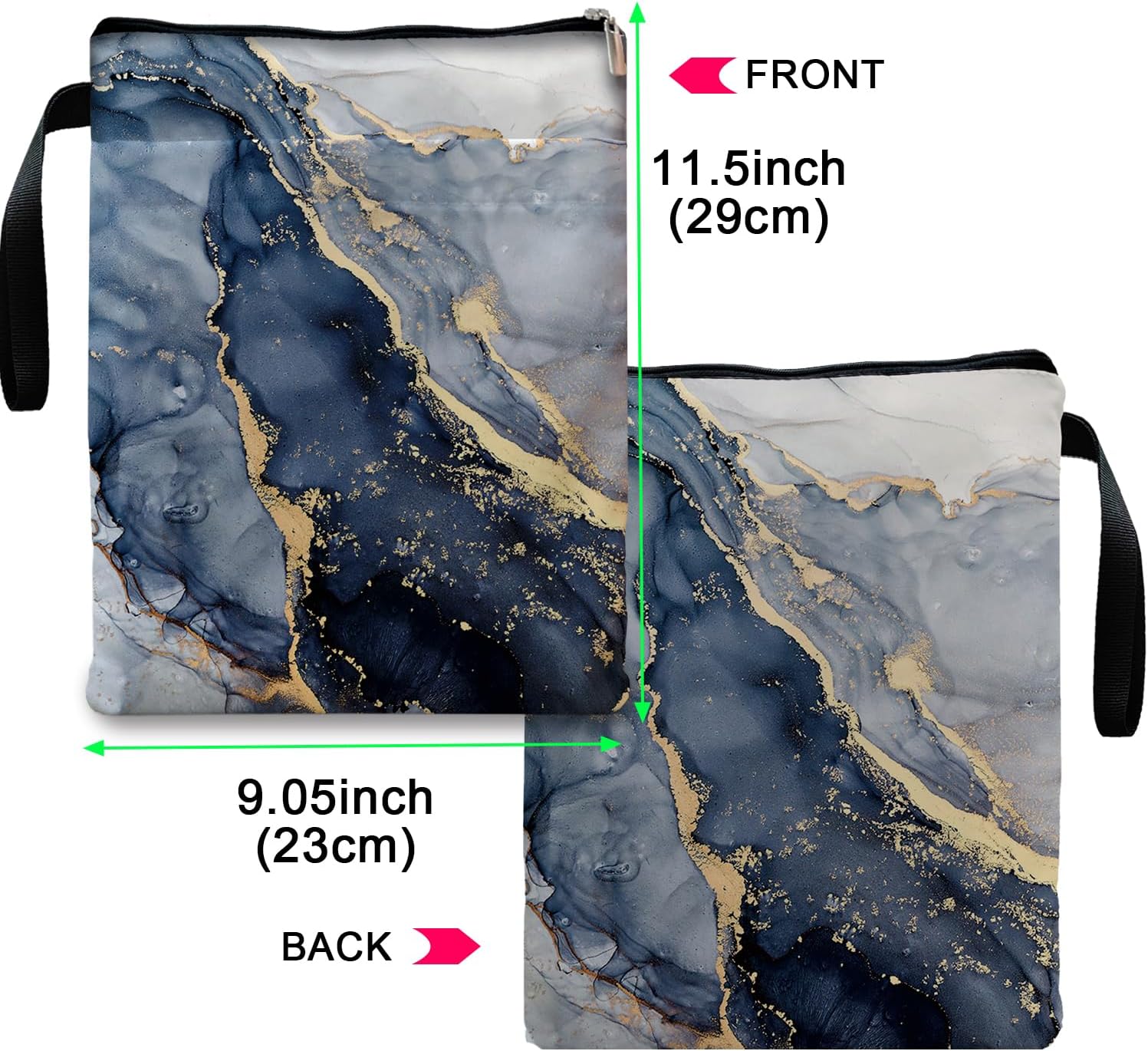 Book Sleeve Book Sleeve for Book Lovers Book Protector Bookish Gifts Book Cover with Zipper for Paperback Washable Bookcover for Teen Adult Teacher Gifts(Golden Cyan Marble)