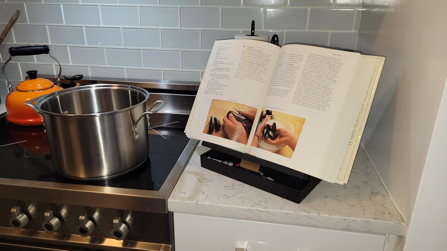 Book Stand with Storage | Textbook Stand, Book Holder Stand, University and Recipe Book Stand for Reading, Cookbook Holder, Book Rest