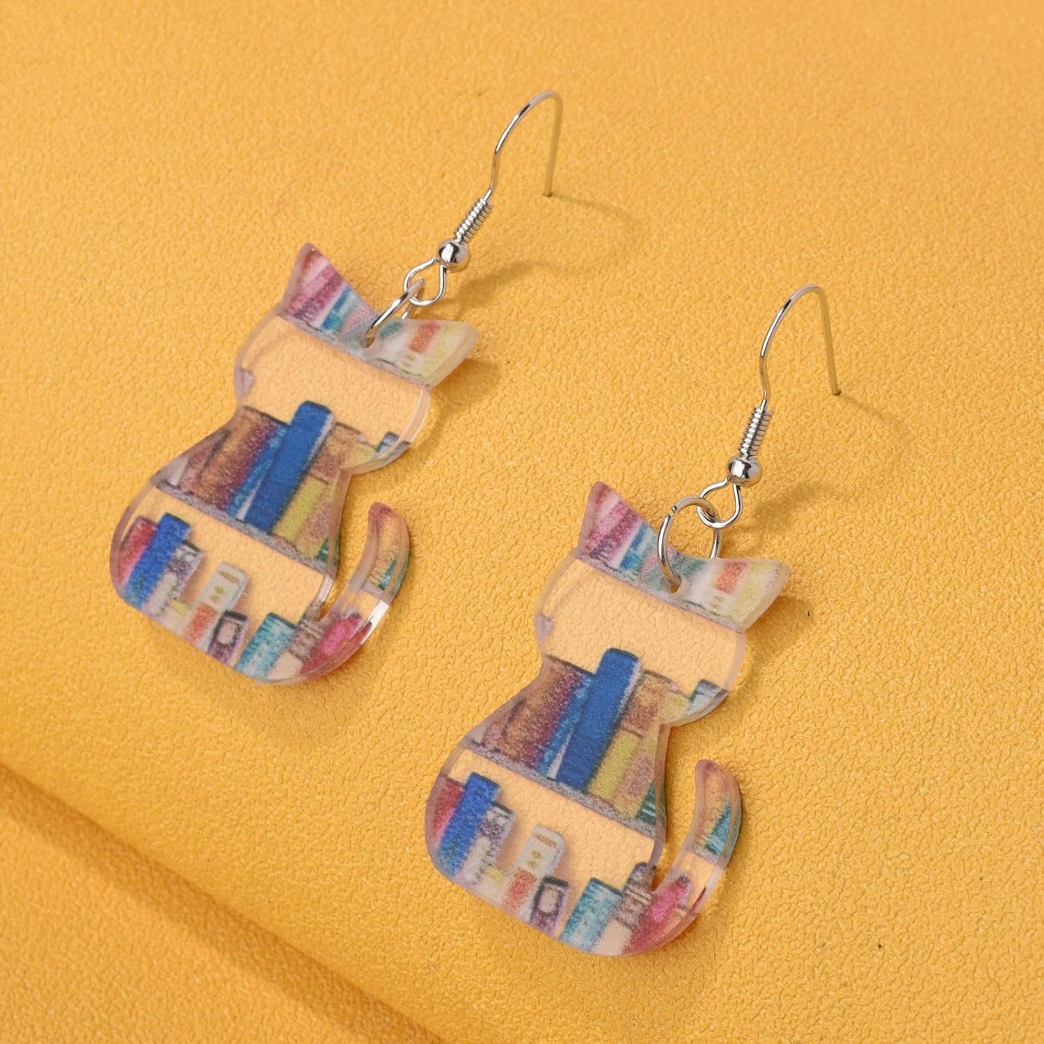 Book Earrings Cat book Earrings Acrylic Bookcase Dangle Earrings