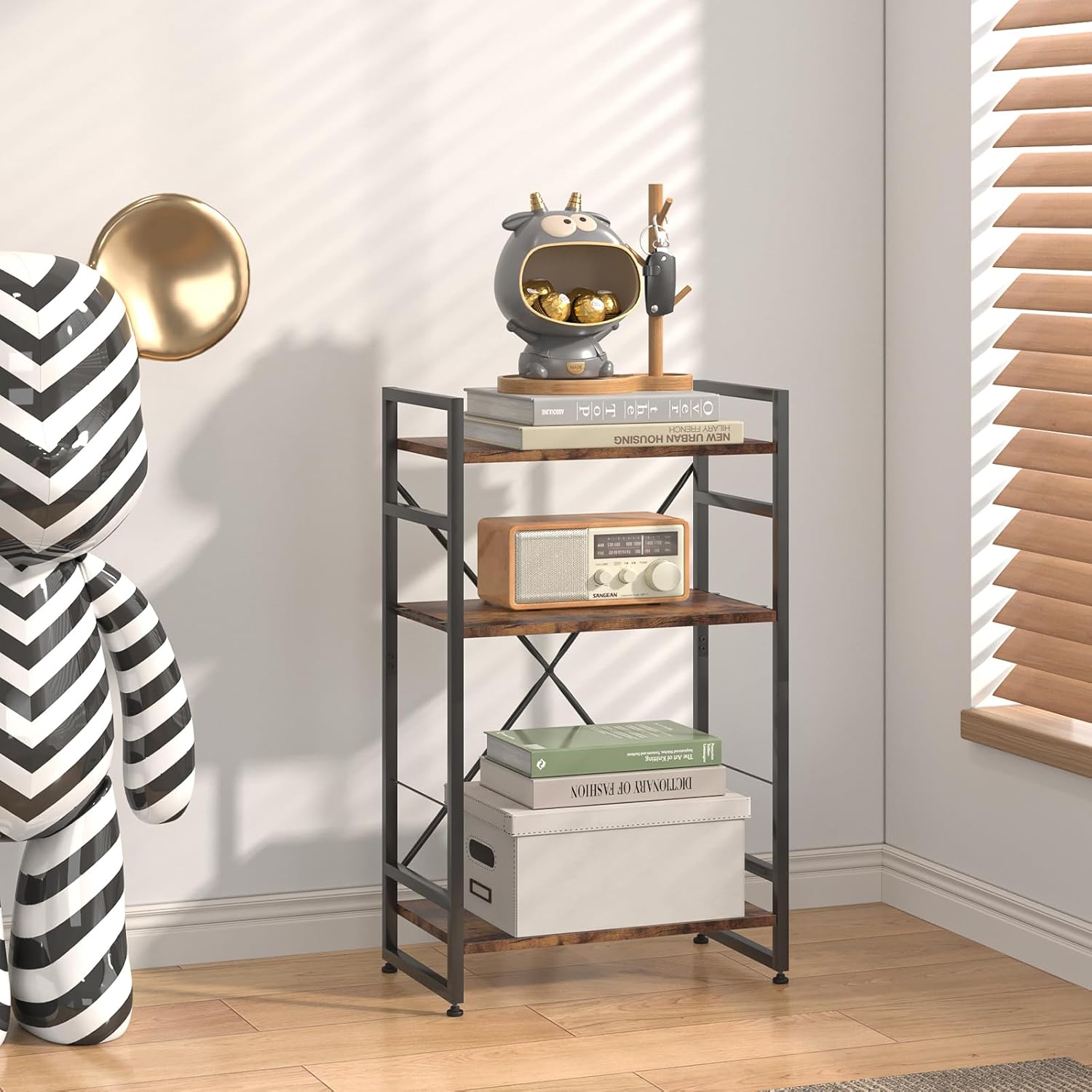 Azheruol Bookshelf 3 Tiers Storage Organizer Brown