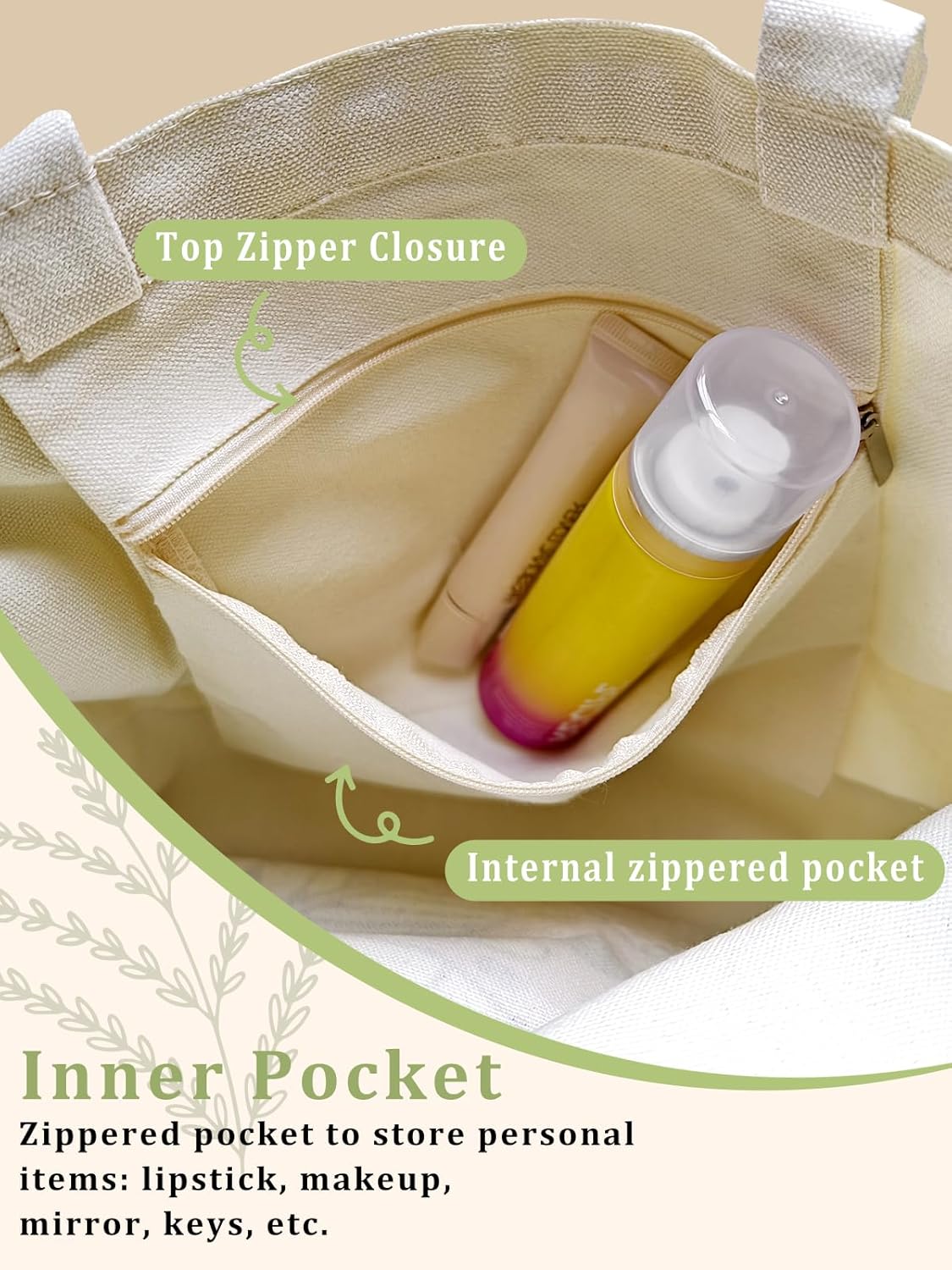 Canvas Book Tote Bag with Inner Zipper for Adults,Birthday Gifts for Book Lovers Women Tote Bag for Book Lovers