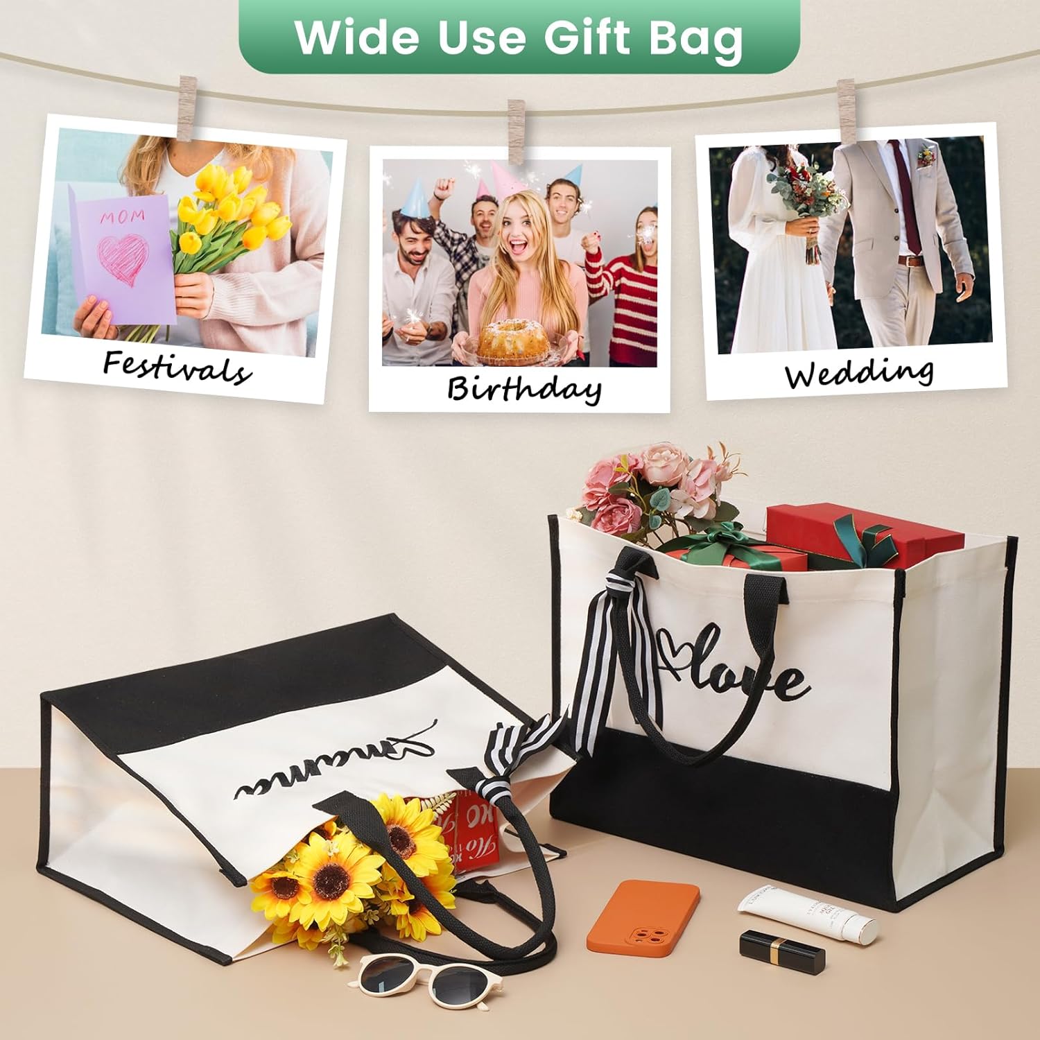 The gift bag is made of durable heavy-duty canvas that lasts long.
