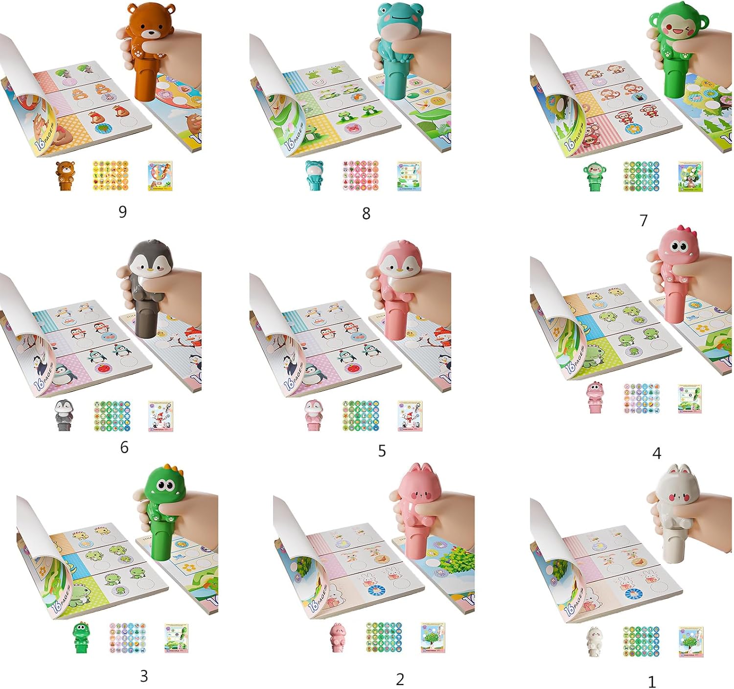 Cartoon Sticker Stamp with 300 Cartoon Sticker and 16 Pages Activity Book Children Sticker Stamper Activity Craft Toy