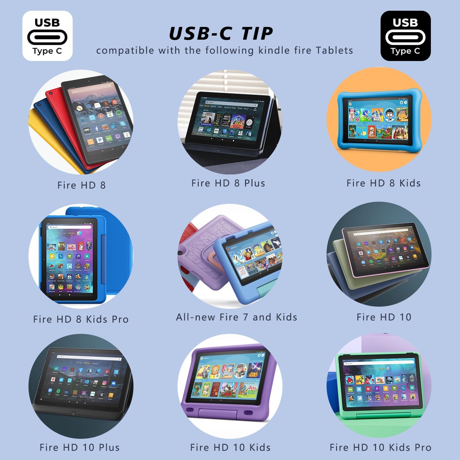 ✅【Compatibility With】: Compatible With All Micro USB and USB-C Tablets and Phones, suible for Kindle Fire Tablet, Fire HD 7 8 9 10 tablet, Fire Kids Edition Tablet, Fire Phone, Fire TV Stick, Echo Dot 2nd Generation, for Fire HD HDX 7” 8.9” Tablet,Paperwhite Voyage for Oasis E-reader ect.