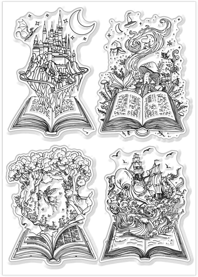 CHGCRAFT Magic Book Clear Stamps Transparent Fantasy Book Silicon Stamps for Card Making and Photo Album Decor Decoration and DIY Scrapbooking