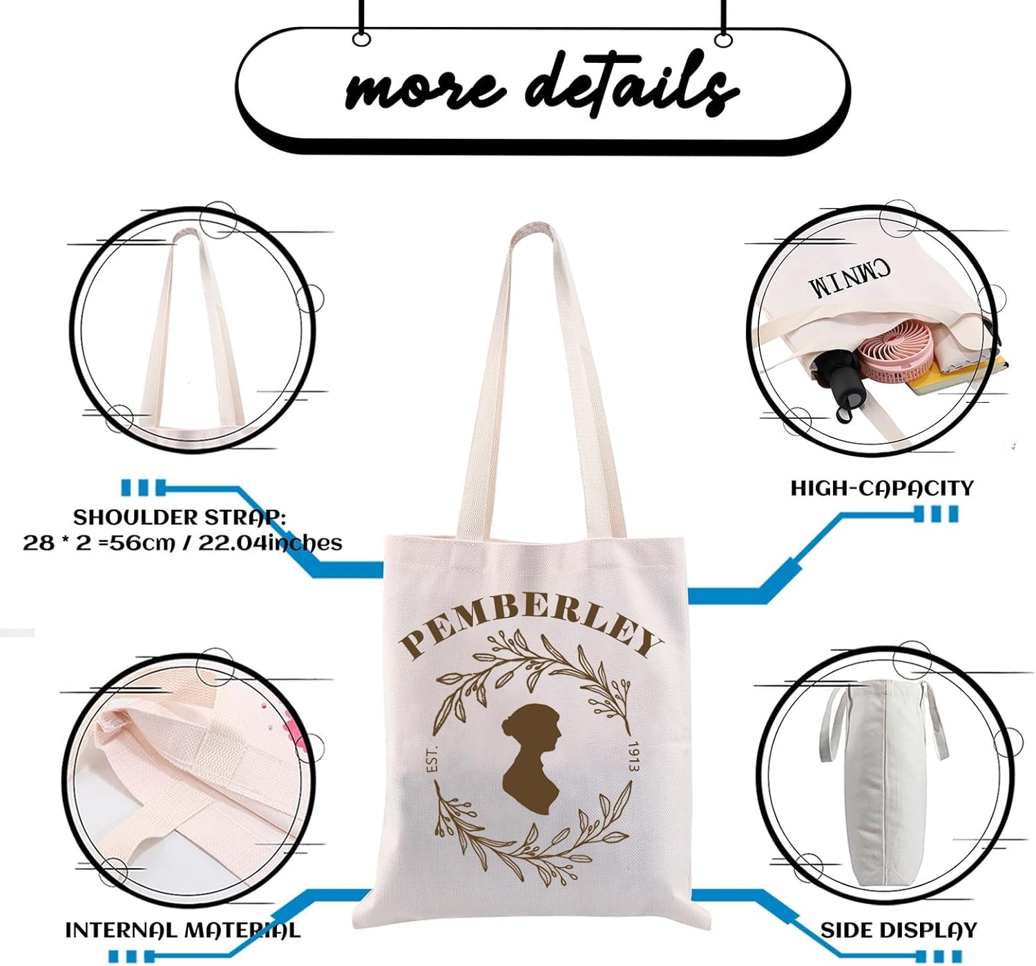 CMNIM Jane Austen Gifts Jane Austen Book Lover Tote Bag Ideal Literary Gifts for Readers Book Nerds Reusable Shoulder Bag