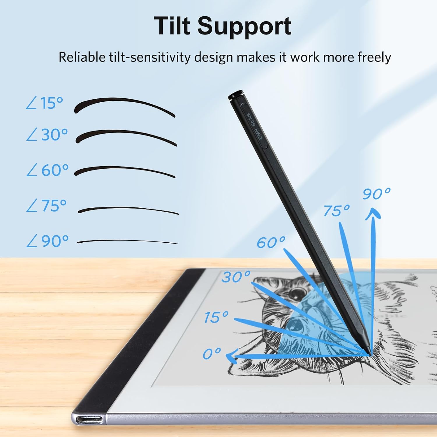 Palm rejection and Tilt support: The pen features a palm rejection function and tilt writing capabilities, making it comfortable to use for long periods