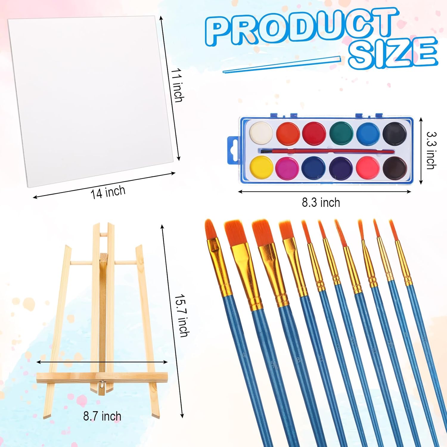 Quality Materials: the painting easel is made of wood; The canvas is made of quality material, easy to use and coloring, not easy to fade; The paint brush has good anti flaking and sturdy wooden handle; The watercolor paints have 12 colors to choose from and can be washed