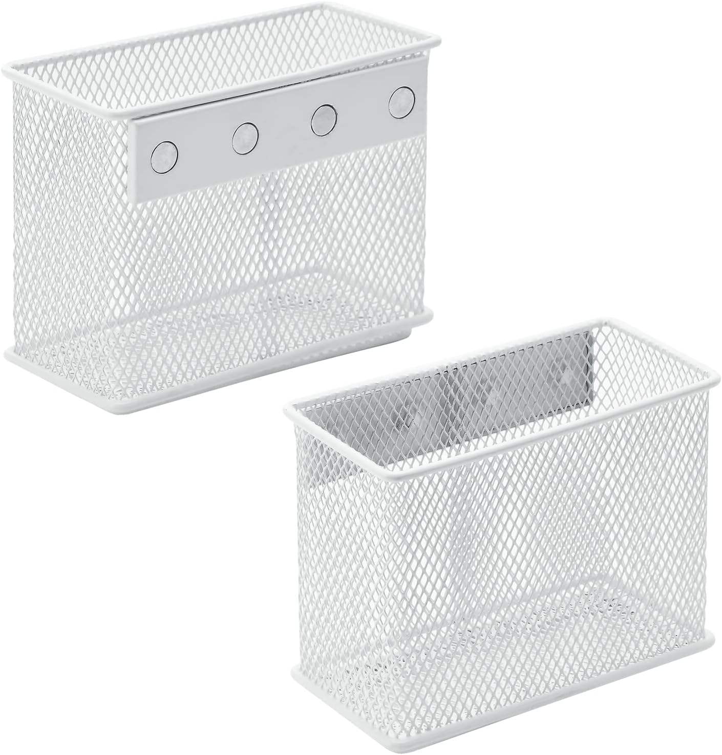 dedoot Magnetic Pencil Holder, Locker Pencil Holder Strong Magnetic Holder for Whiteboard Marker, 4.7×2.3×3.7inch Black Mesh Magnetic Holder for Fridge, Sponge, Recipe, Beverage,White