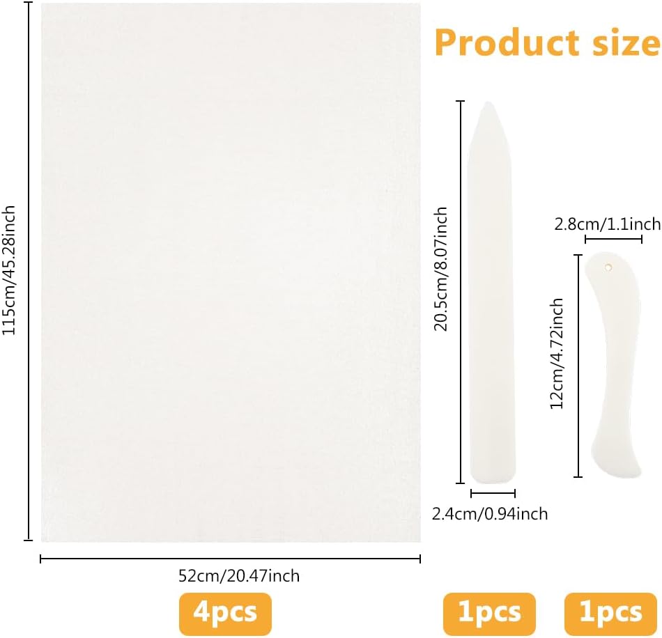 Package Content: You will get 4 pieces of book binding cloth and 2 bone folder tools. The binding cloth is about 52cm wide, 115cm long, 0.3mm thick, and the tool is about 12-20.5×2.4-2.8×0.5cm. enough to meet your needs for book mending.