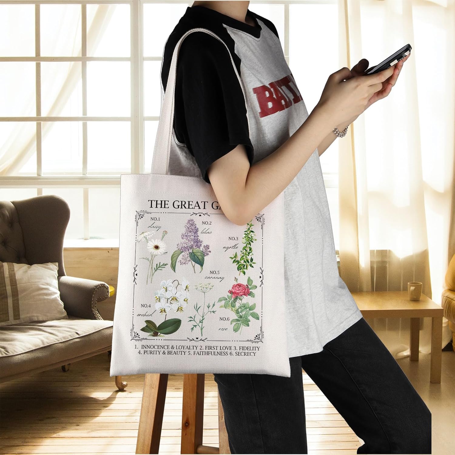 ENSIANTH Classic Book Themed Tote Bag Dark Academia Gift Literary Book Lover Gift Cottagecore Literature Bookish Merch