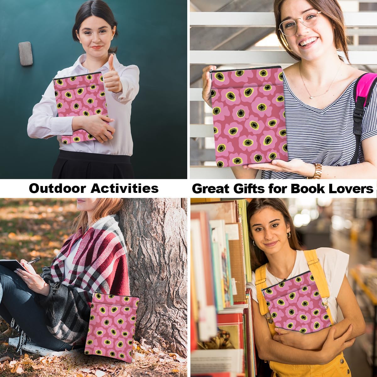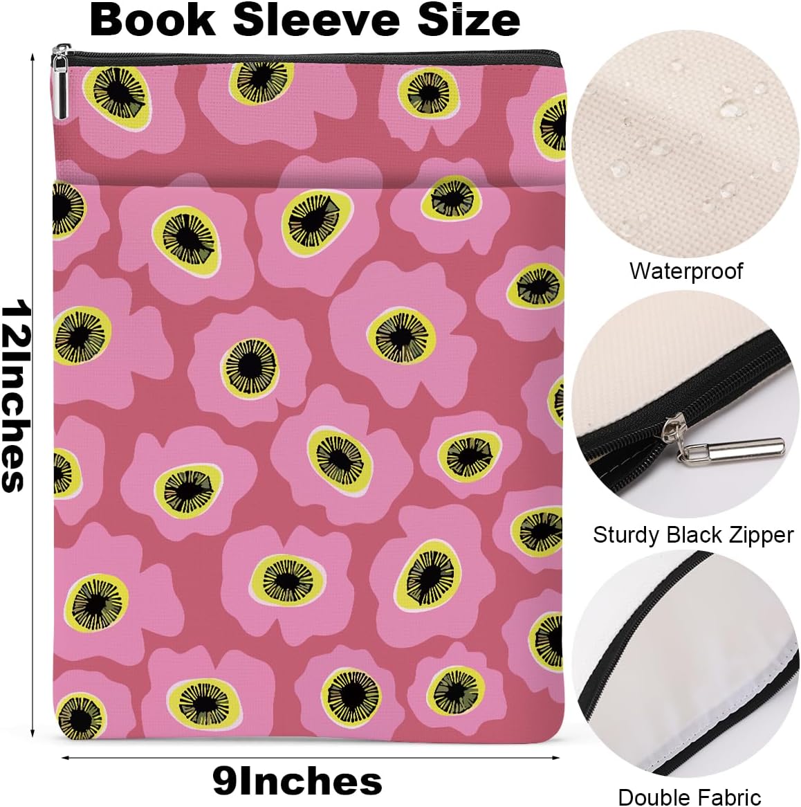 Floral Book Lovers Gifts Waterproof Flower Book Sleeve Botanical Book Pouch Book Protector with Zipper and Front Pocket Book Cover Case for Women Her Bestie Birthday Book Accessories Book Club Gifts