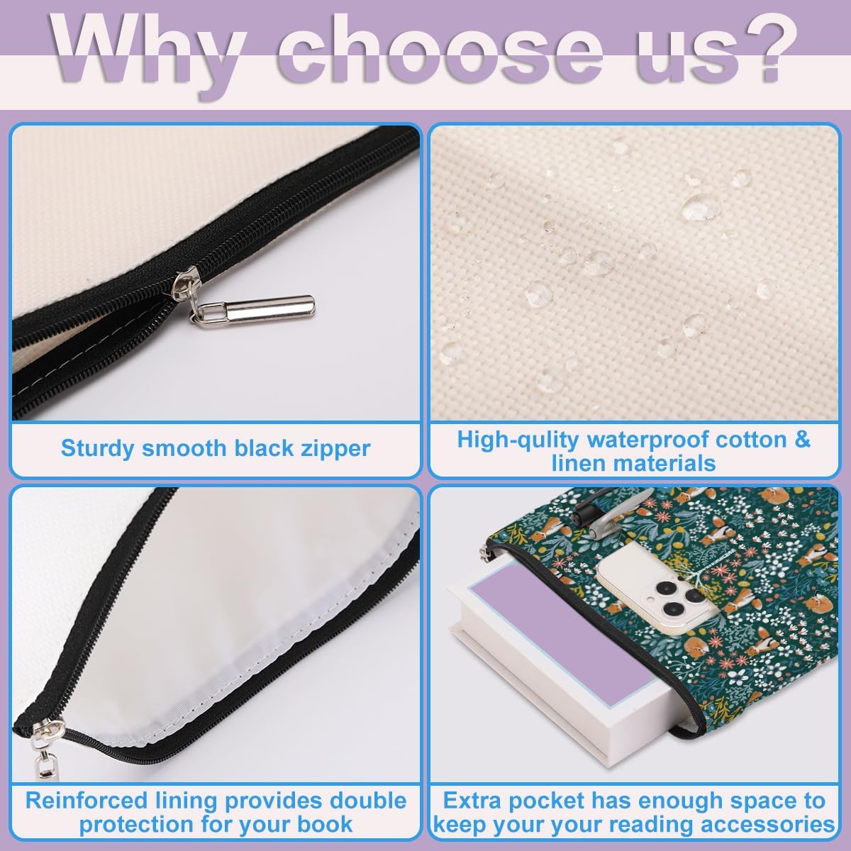 Premium Material: Our book protector is made of cotton linen, lightweight, waterproof, washable, sturdy, that can protect the cover and corners of your books and other accessories and easily to put them in your bag.