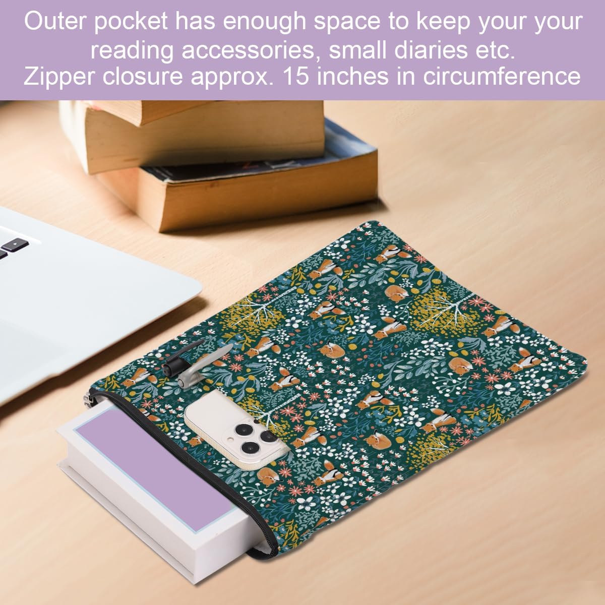 Forest Foxes Book Sleeve Book Cover Book Protector with Zipper Graduation Birthday Mothers Day Fox Gifts for Fox Lovers Women Friends Sisters Daughter Book Lovers Gifts Bookish Bookworm Gifts