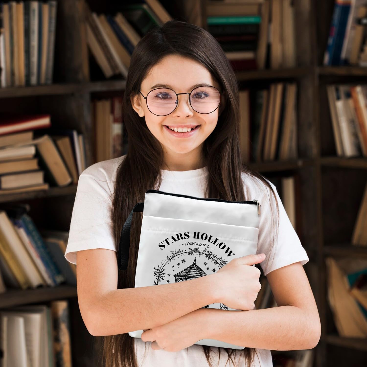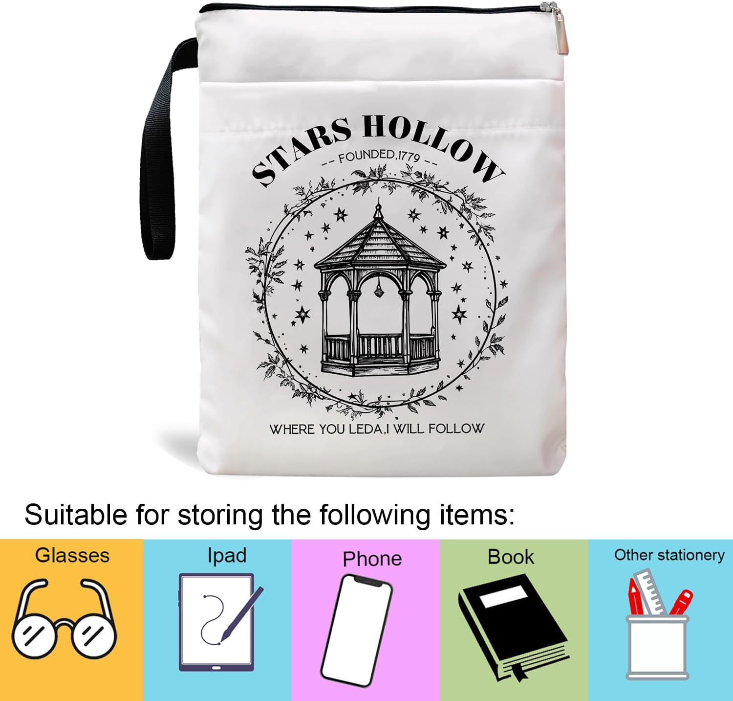 Funny Stars Hollow Theme Book Sleeve, Book Covers with Zipper, Book Lovers, Book Pouch Kindle Protector, Gifts for Women Teacher Librarian Bookworm Bookish-Stars Hollow Connecticut (White-C, Large)