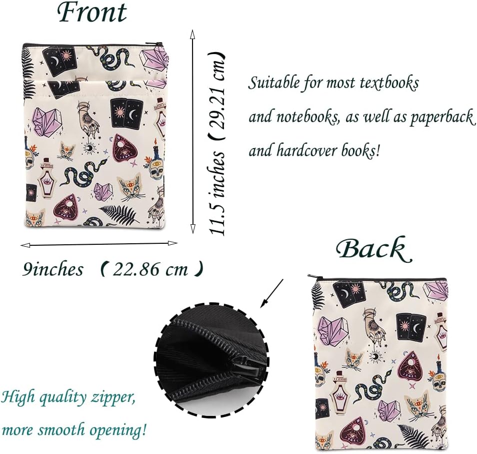 G2TUP Witchy Book Sleeve Witch Book Cover for Book Lovers Wizard Bookish Witch Bookworm Book Cover with Zipper (Witch Book Sleeve)