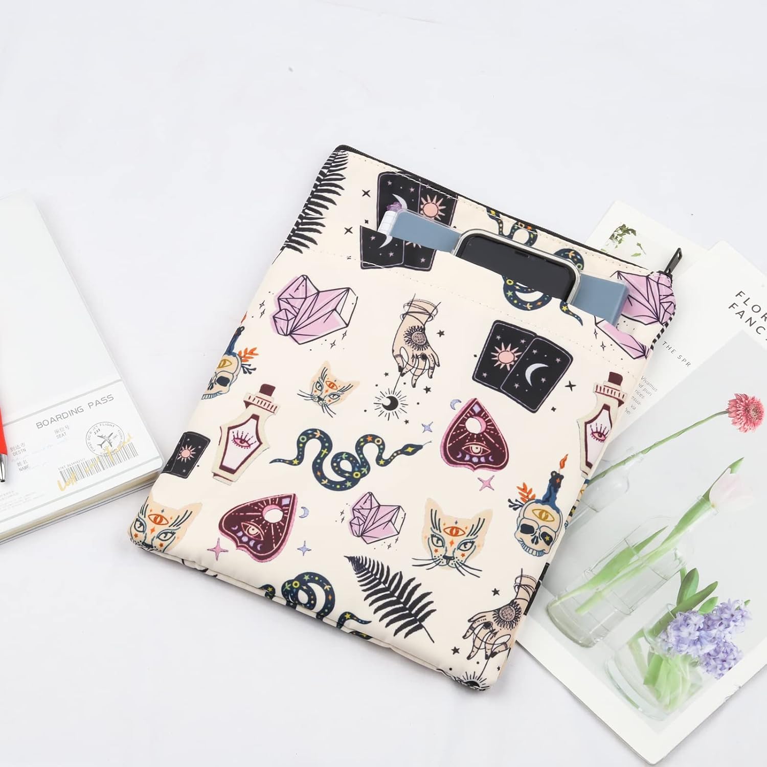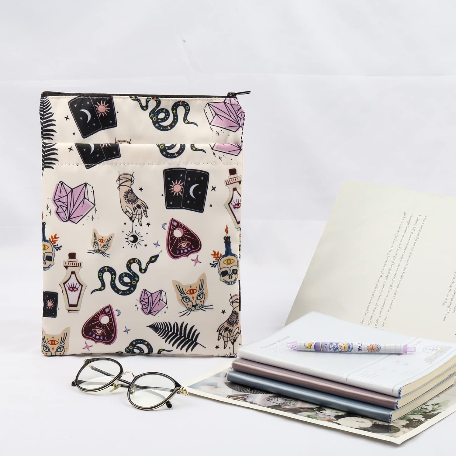 [Magic Spells Witchy padded book sleeve]Witch Protective book cover is an ideal choice for protecting your favorite book wherever you put it. The book cover closes the smooth zipper and keeps the book firmly inside without worrying about the book falling out during the trip.