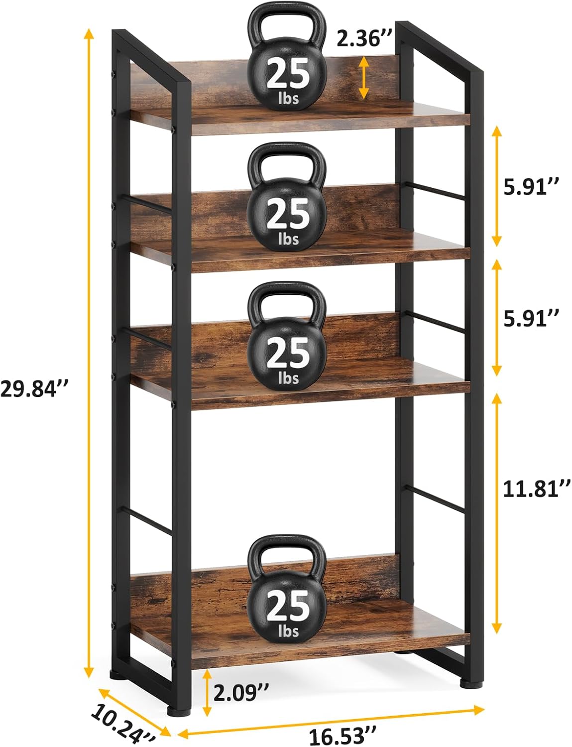 Crafted with robust metal and wood; The thickened metal frame allows you to place your belongings without worrying about shaking or toppling; The metal shelf feet can be adjusted to different heights, ensuring stability even on uneven floors