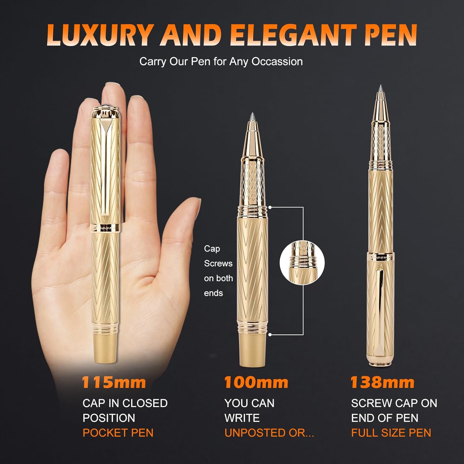 Portable Mini Rollerball Pen: Precision engineered to allow the cap to securely screw on at either end.When closed, this is a short pen that slips easily into your pocket. With cap posted, this is a full-size pen with perfect balance, sitting beautifully in your hand. Small and hidden, easy to carry for any occasion