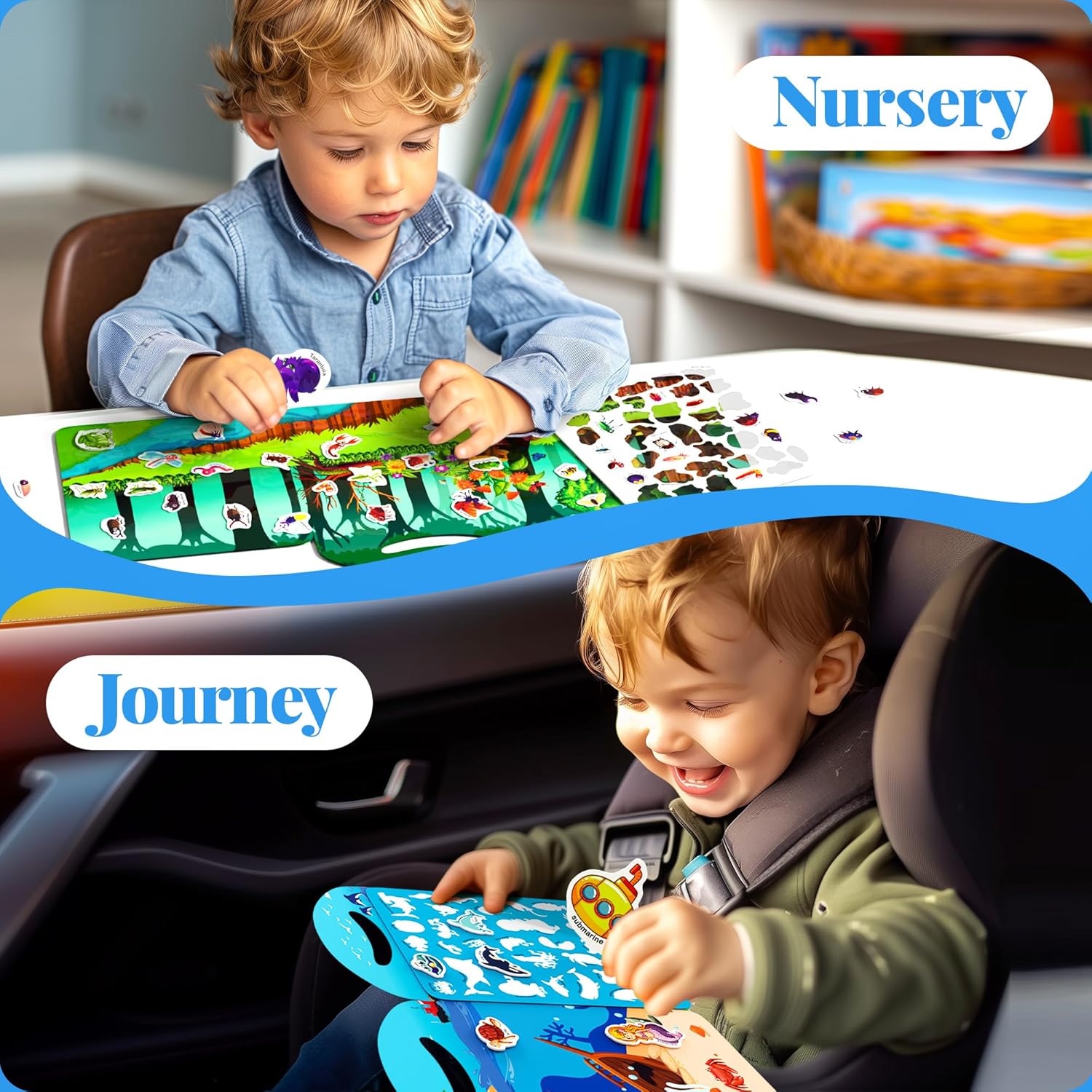 【Portable & Easy to Carry】Sticker books come with a portable handle and a place to store stickers, convenient to carry for camping, road trip. Airplane train car plane travel essentials to keep your kids busy and make more enjoyable on the journey.