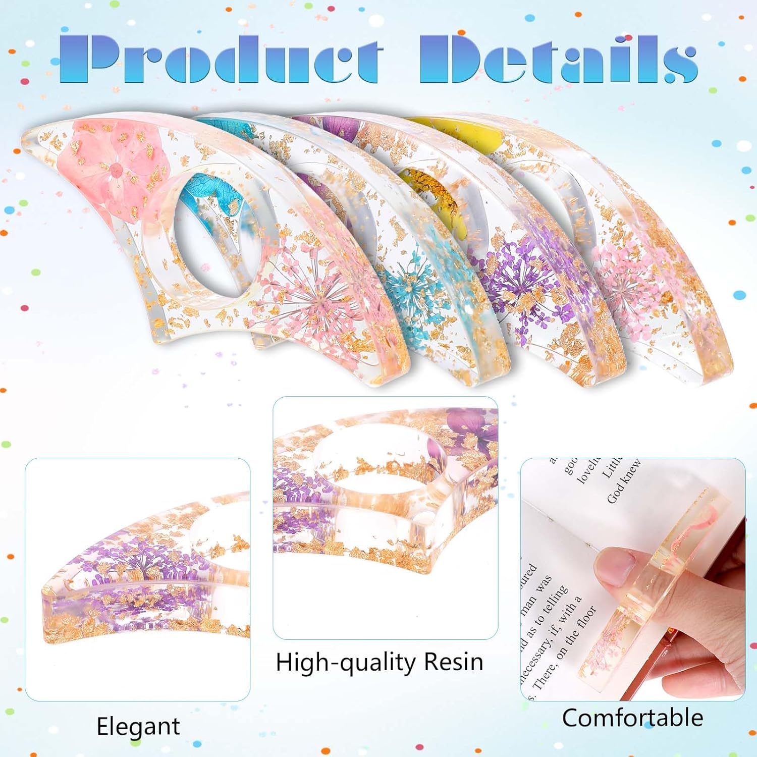 Jeffdad Book Page Holder, 4 PCS Dried Flower Resin Transparent Bookmark Handmade Dried Flower Book Opener Holder Thumb, Meaningful Gifts for Book Lovers Teachers Students(Style1)