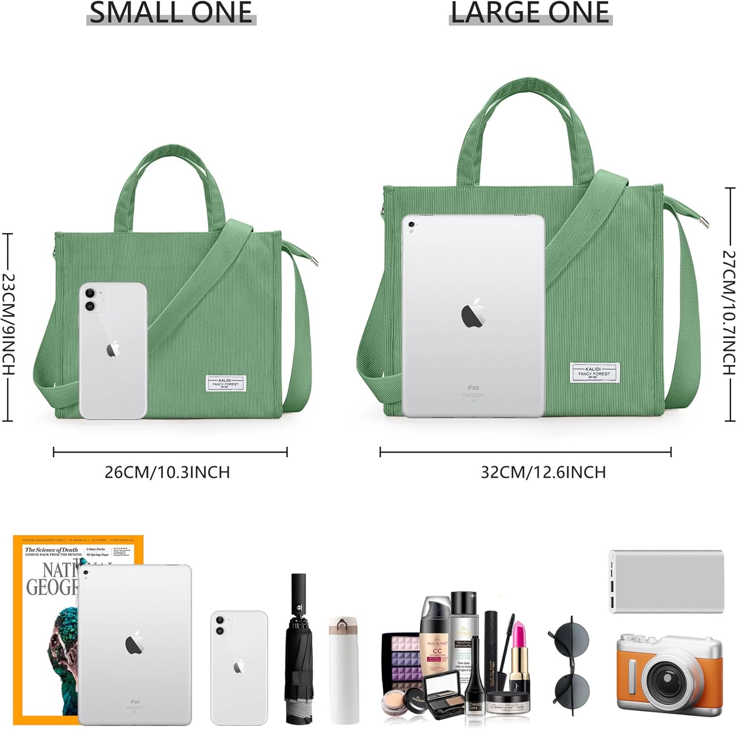 * Large Capacity: Can hold your laptop, Ipad, phone, wallet. bottle keys, makeup, umbrella, tissue and so on.