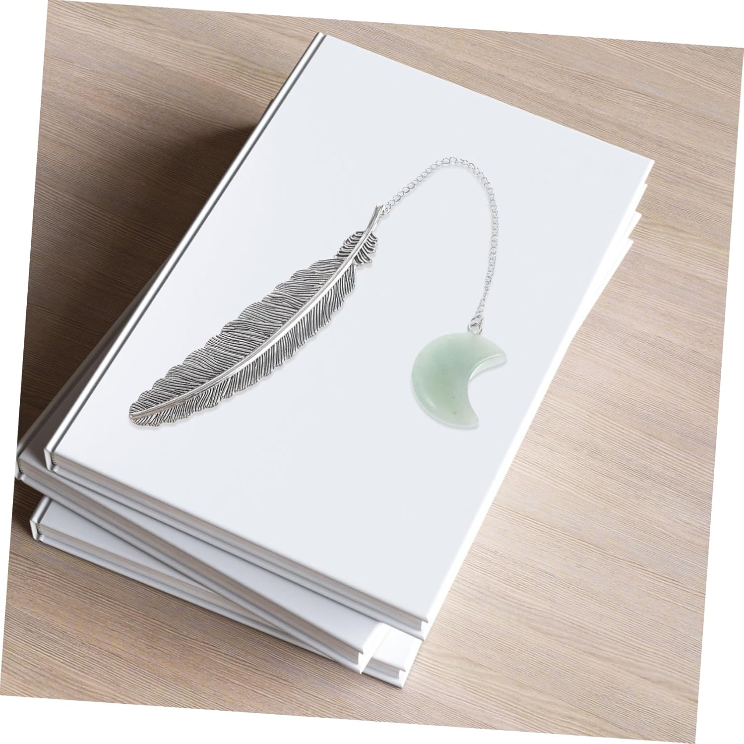 KALLORY Natural Moon Crystal Readers Bookmark Reading Bookmarks Retro Style Bookmark Book Reading Mark Bookmarks Presents Tassel Bookmark Shaped Bookmark Plume Bookmark Crystal Rough
