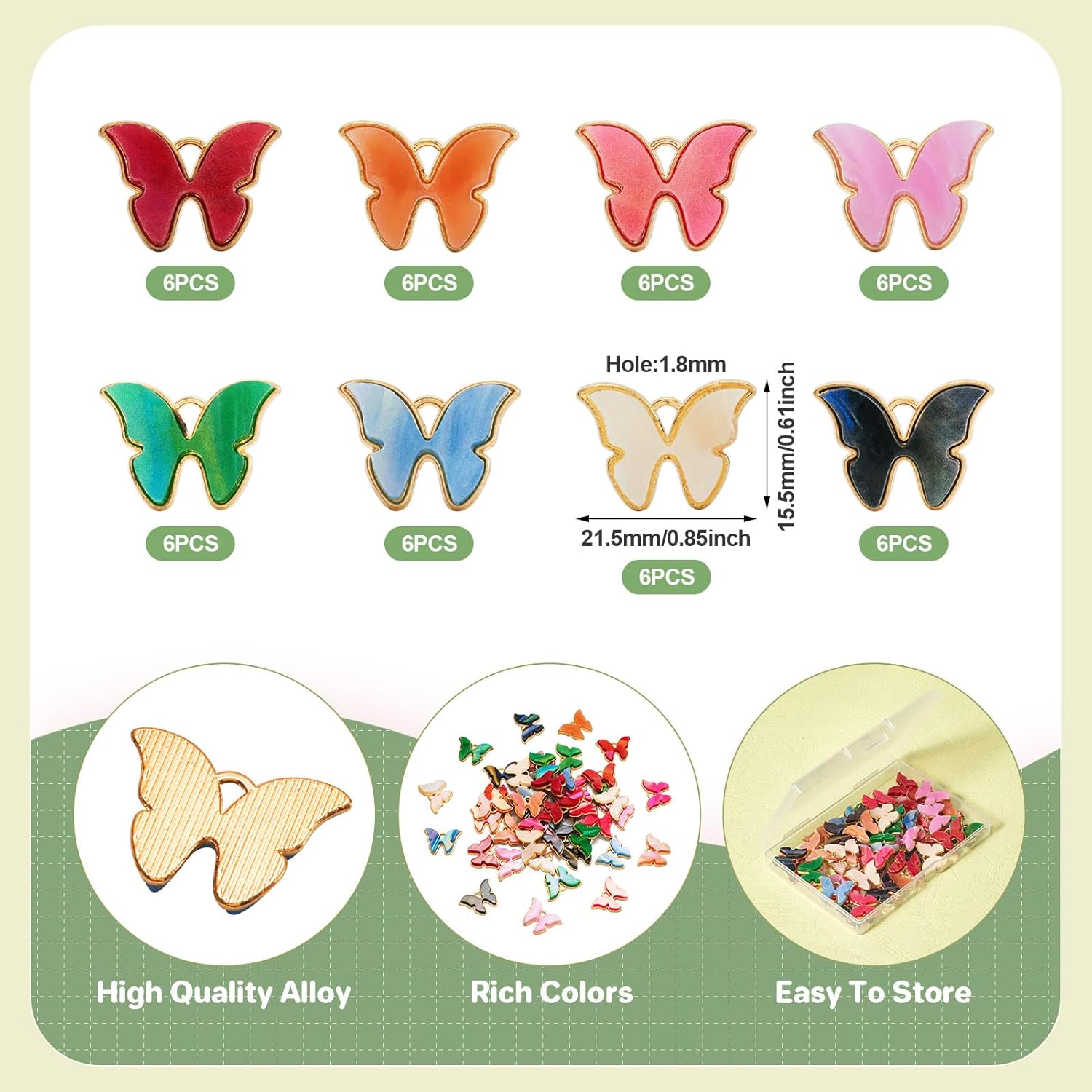 Be the first to review “KISSITTY 48pcs Butterfly Charms Insect Theme Colorful Acrylic Pendants Dangle Embellishments for Jewelry Making Hair Clip Decorations Necklaces Bracelets Crafts Ornaments”