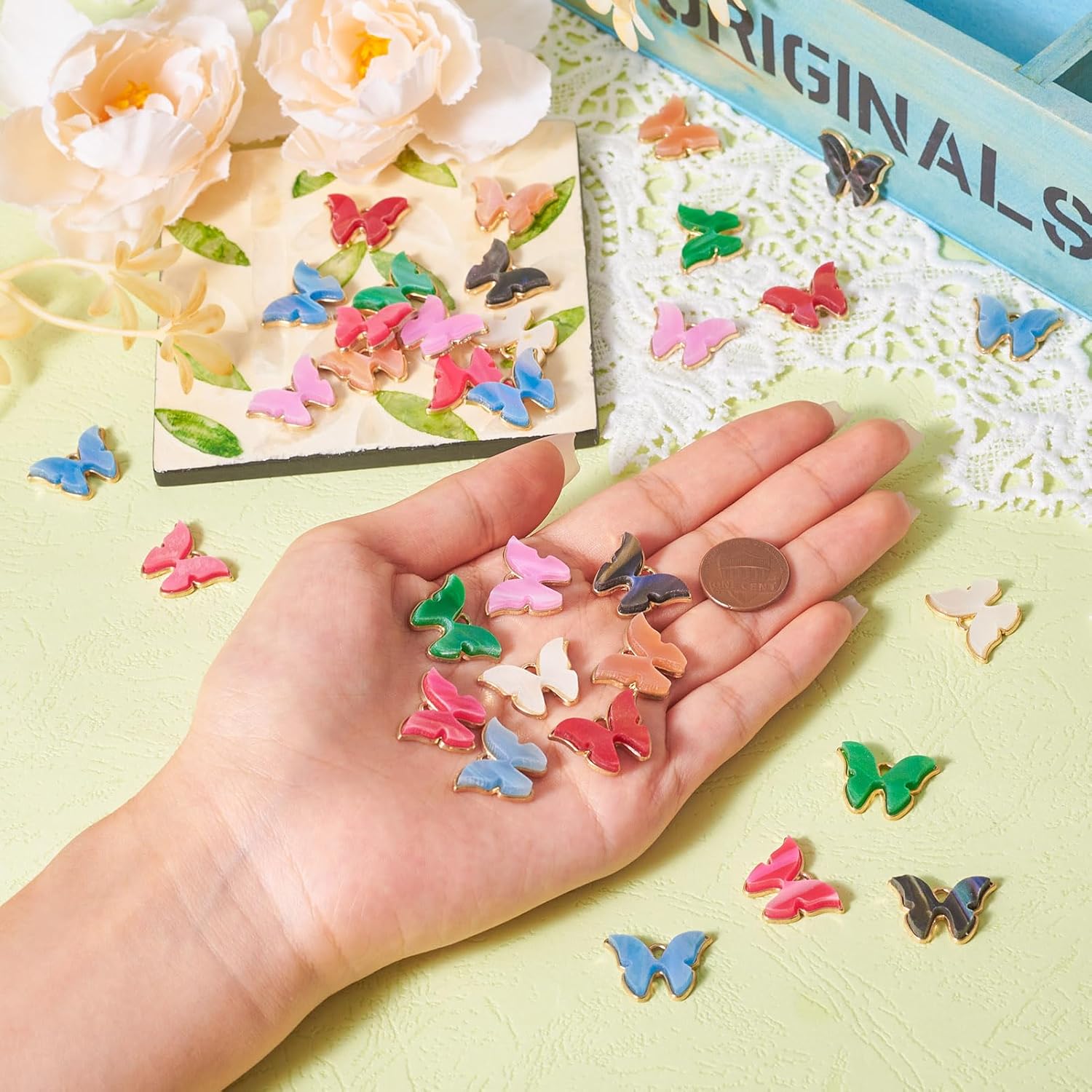 KISSITTY 48pcs Butterfly Charms Insect Theme Colorful Acrylic Pendants Dangle Embellishments for Jewelry Making Hair Clip Decorations Necklaces Bracelets Crafts Ornaments