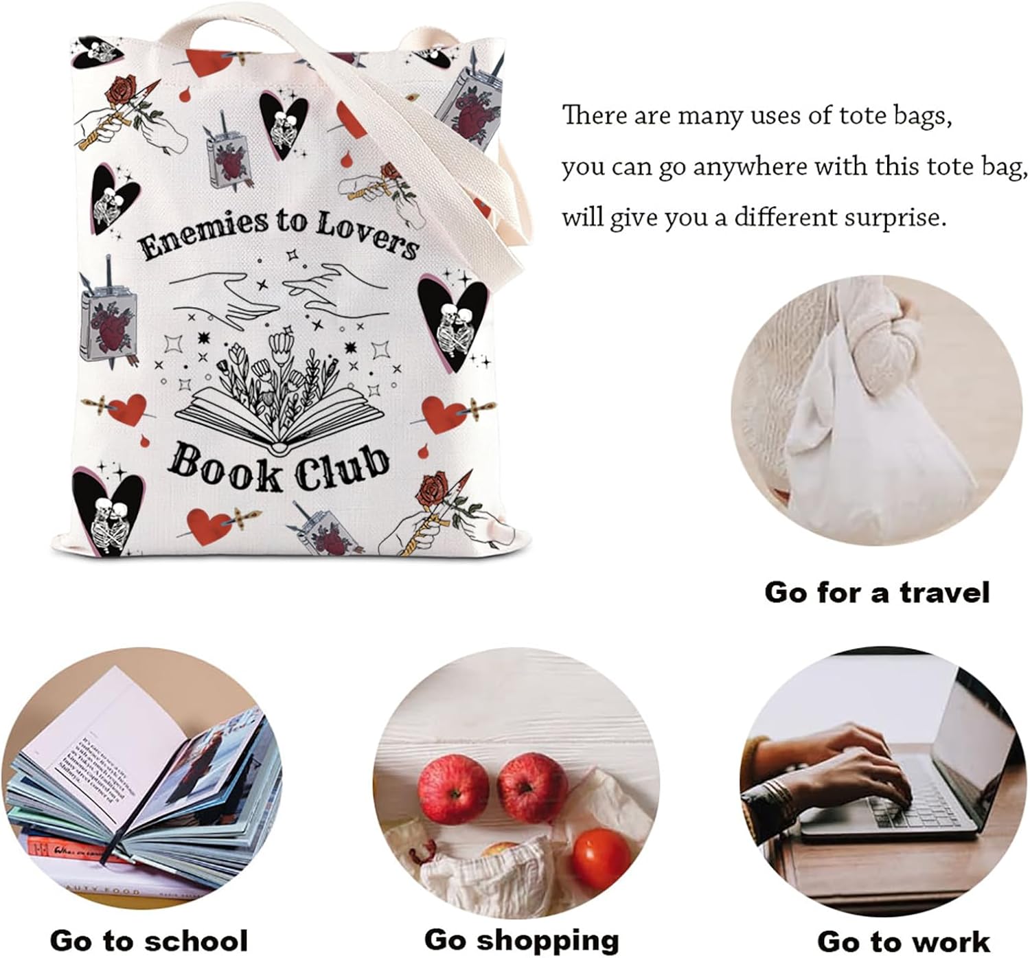 KUIYAI Enemies to Lovers Book Club Tote Bag Smut Lovers Shoulder Bag Romance Reader Canvas Bag Book Club Gift Literary Gift
