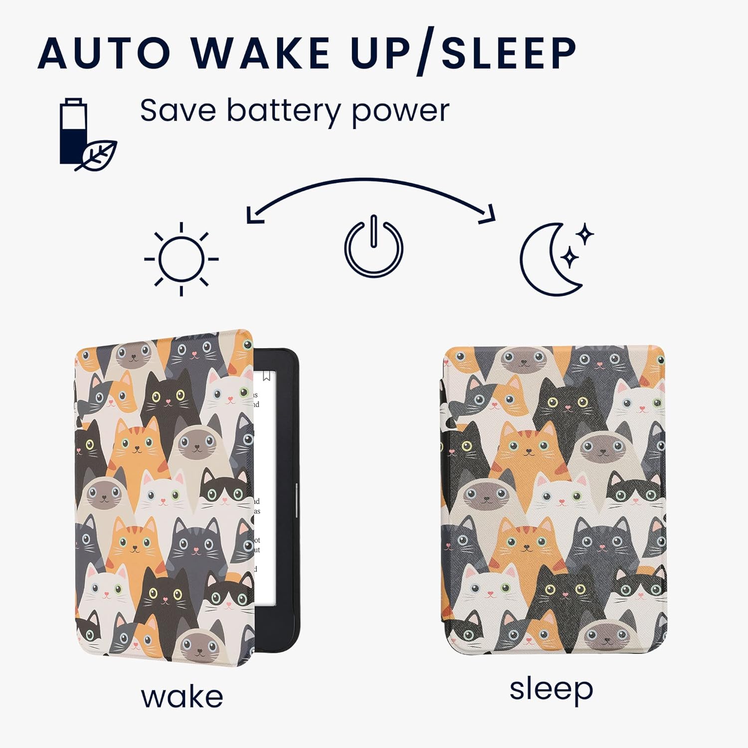 kwmobile Case Compatible with Kobo Clara 2E / Tolino Shine 4 Case – eReader Cover – Cats Orange/Black/White