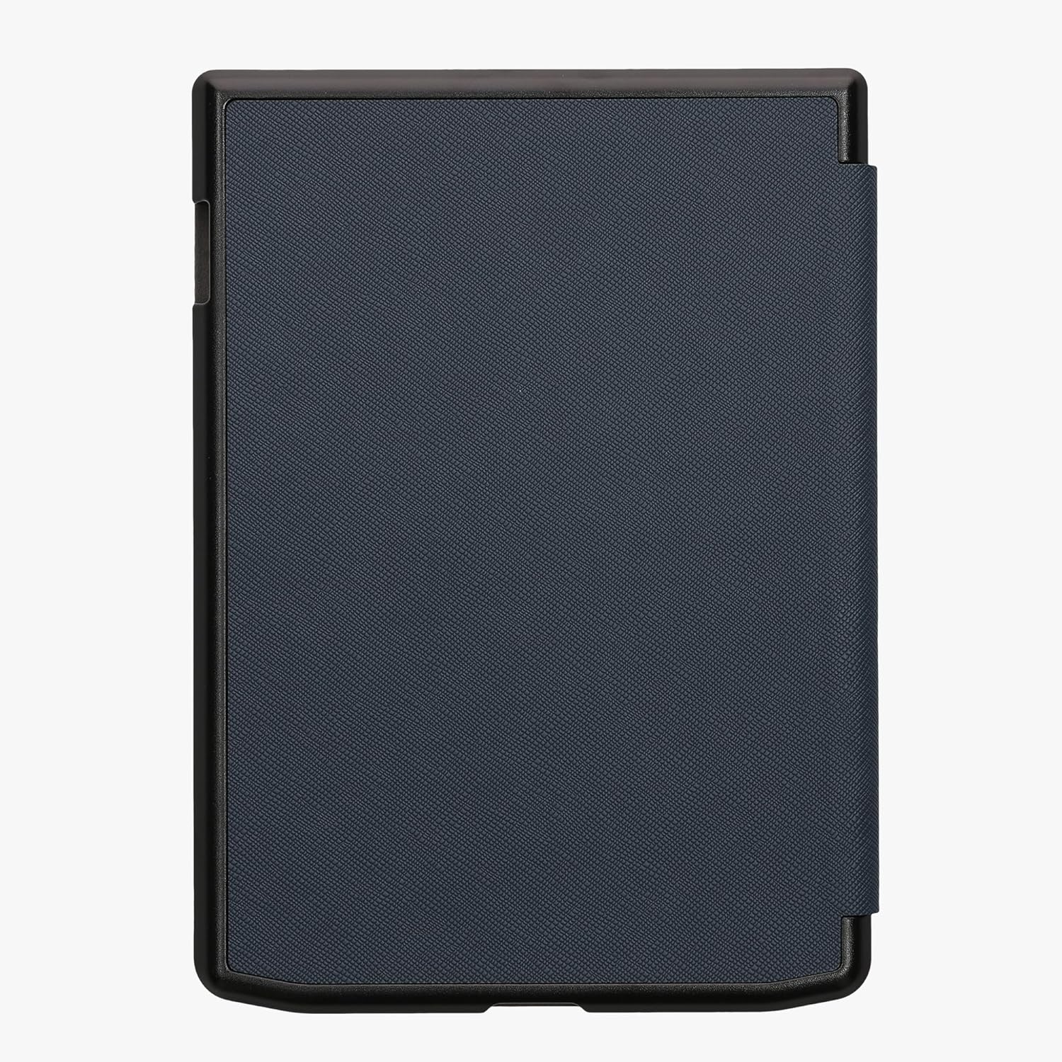 LEATHER LOOK: eReader case is made of durable synthetic leather in dark blue with soft interior to protect against shocks, falls, drops, scratches and bumps